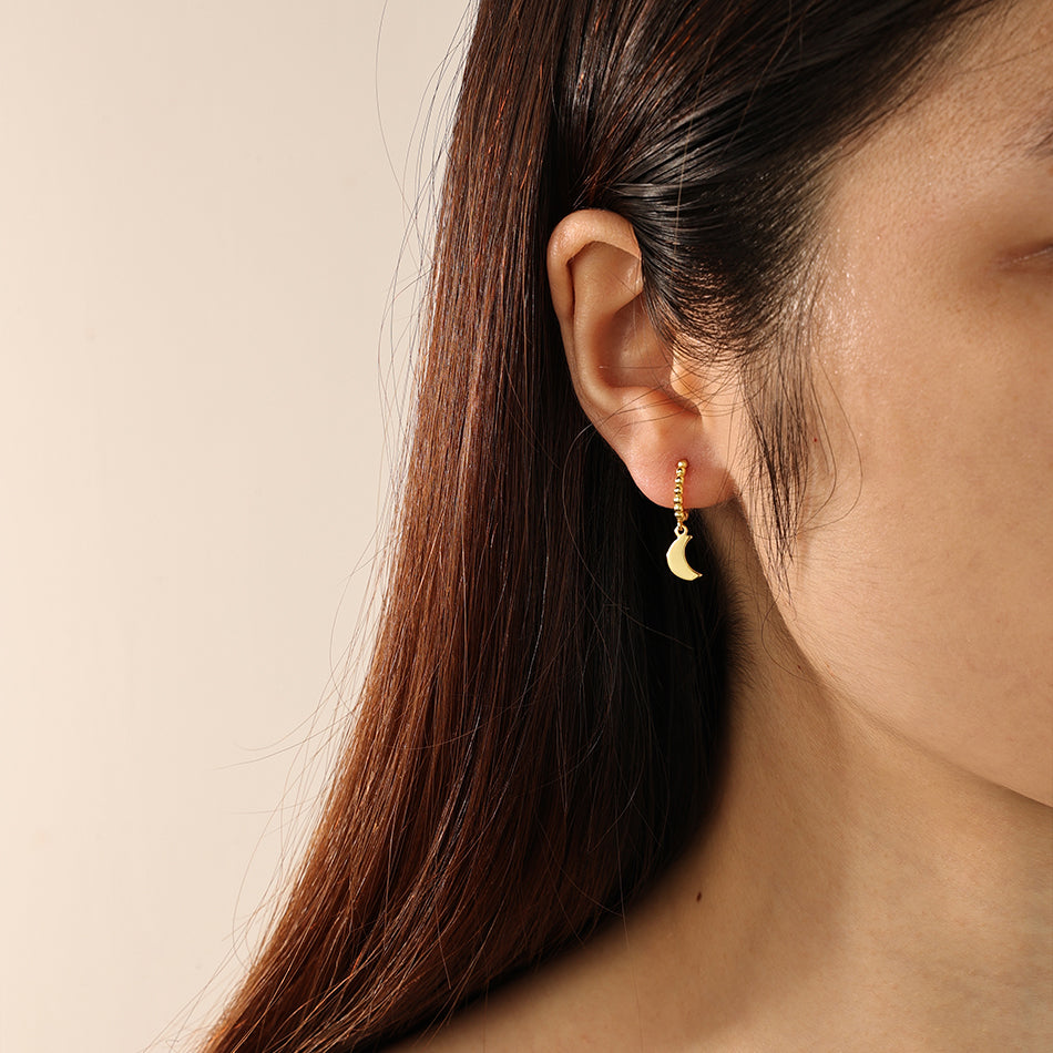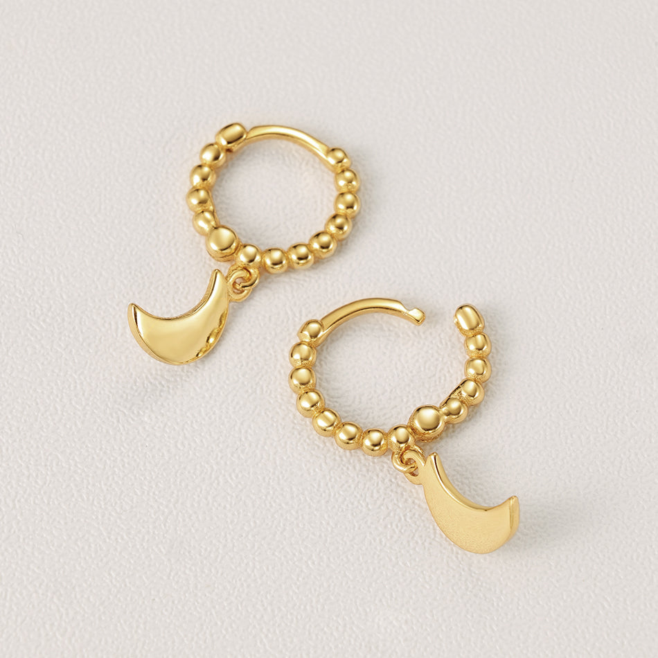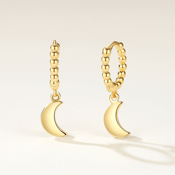 FE2246 925 Sterling Silver Beads Hoop Crescent Moon Dangle Earrings