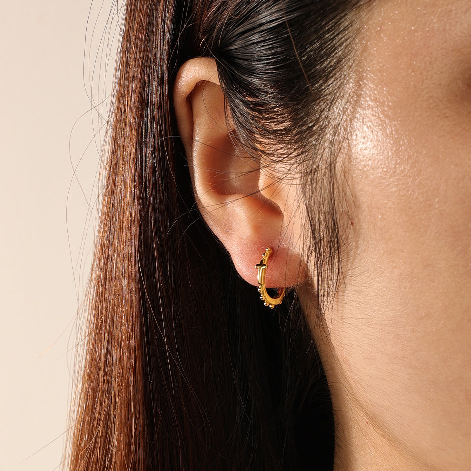 FE2228 925 Sterling Silver Small Beads Polished Cross Hoop Earrings