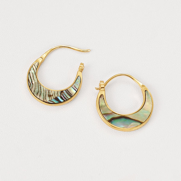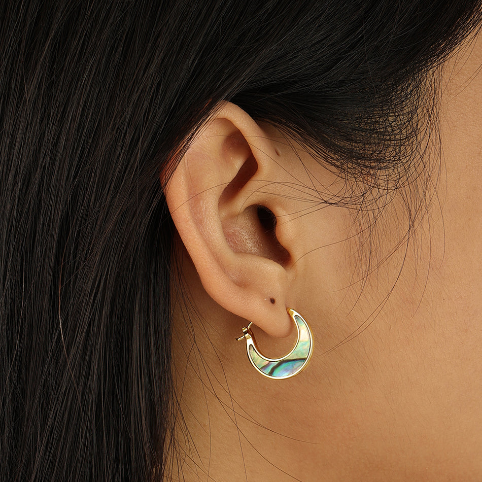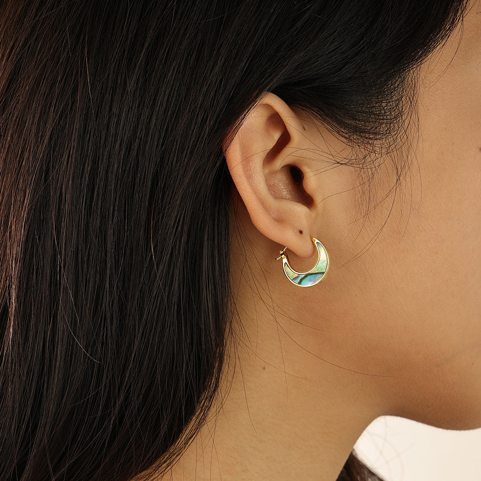 FE2248 925 Sterling Silver Abalone Shell Crescent Round Earrings