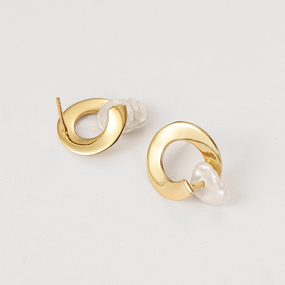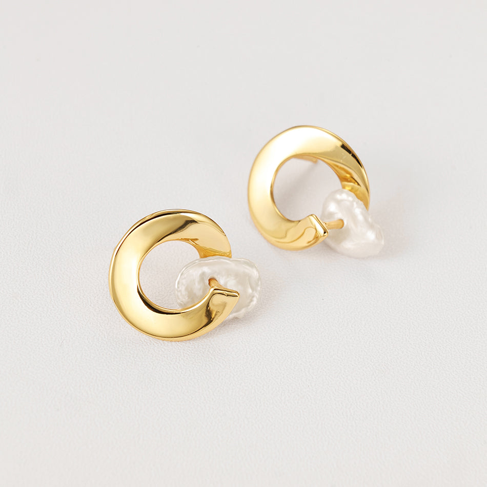 FE2254 925 Sterling Silver Irregular Baroque Pearl Stud Earrings