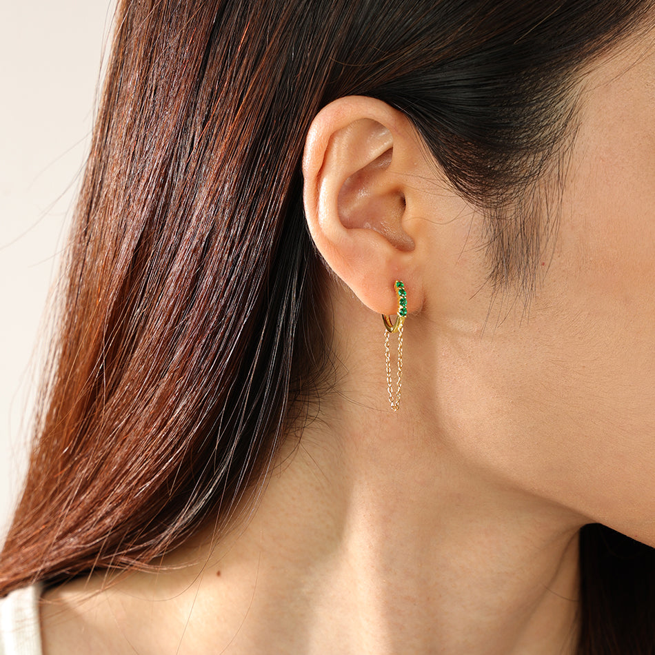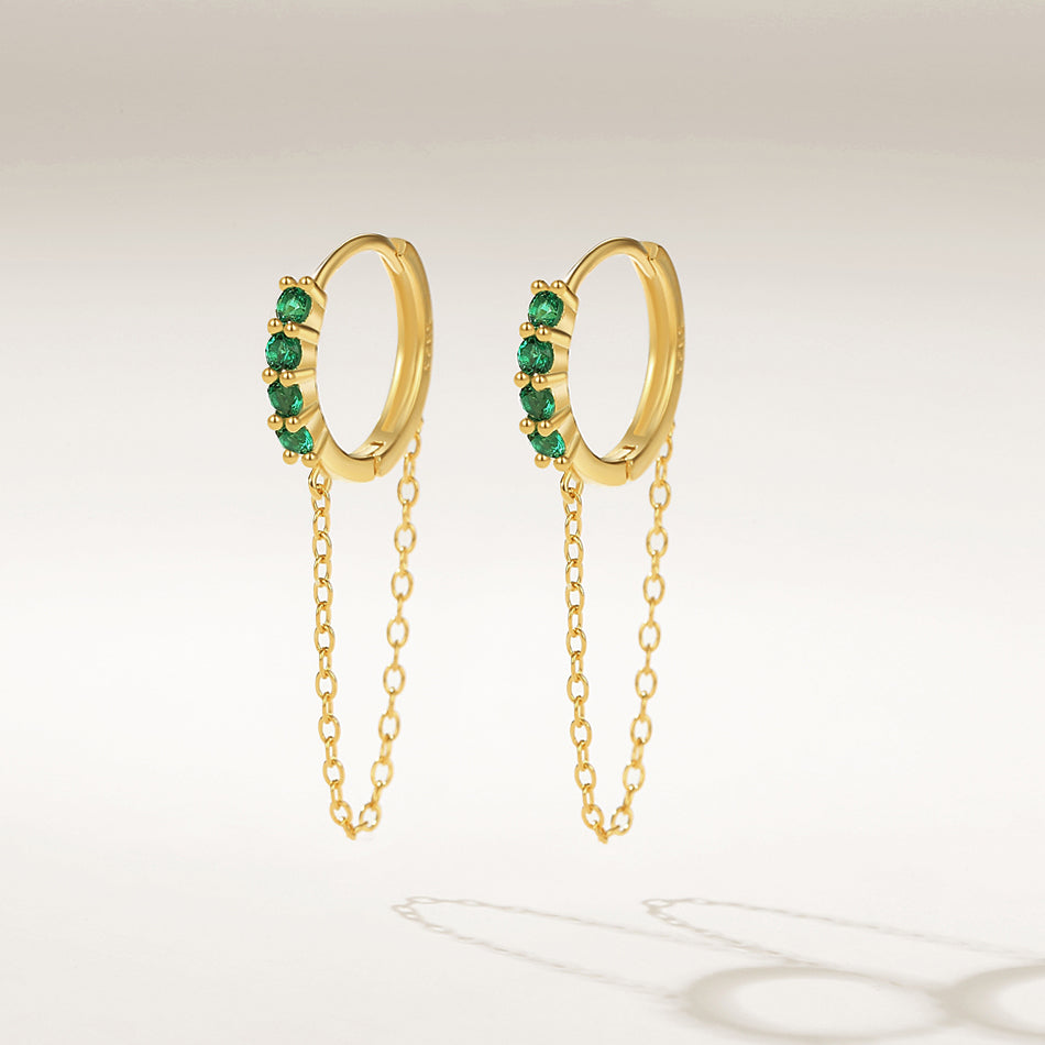 FE2286 925 Sterling Silver Green CZ Chain Hoop Earrings