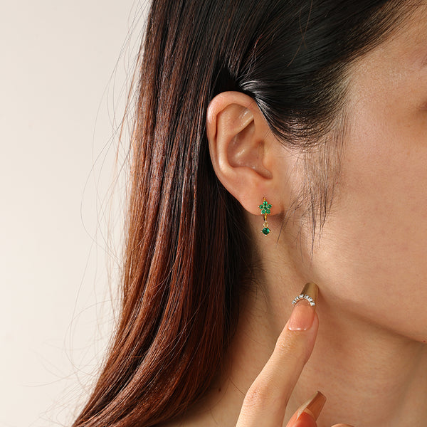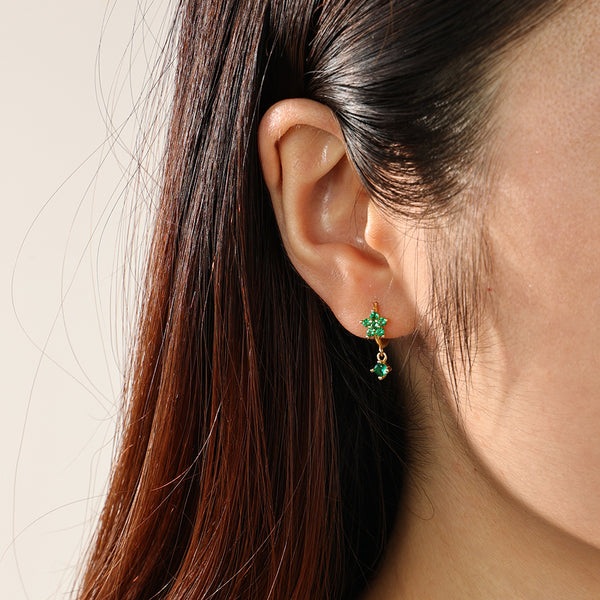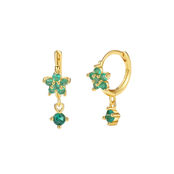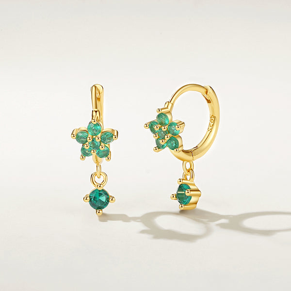 Cubic Zirconia Flower Dangle Hoop Earrings |