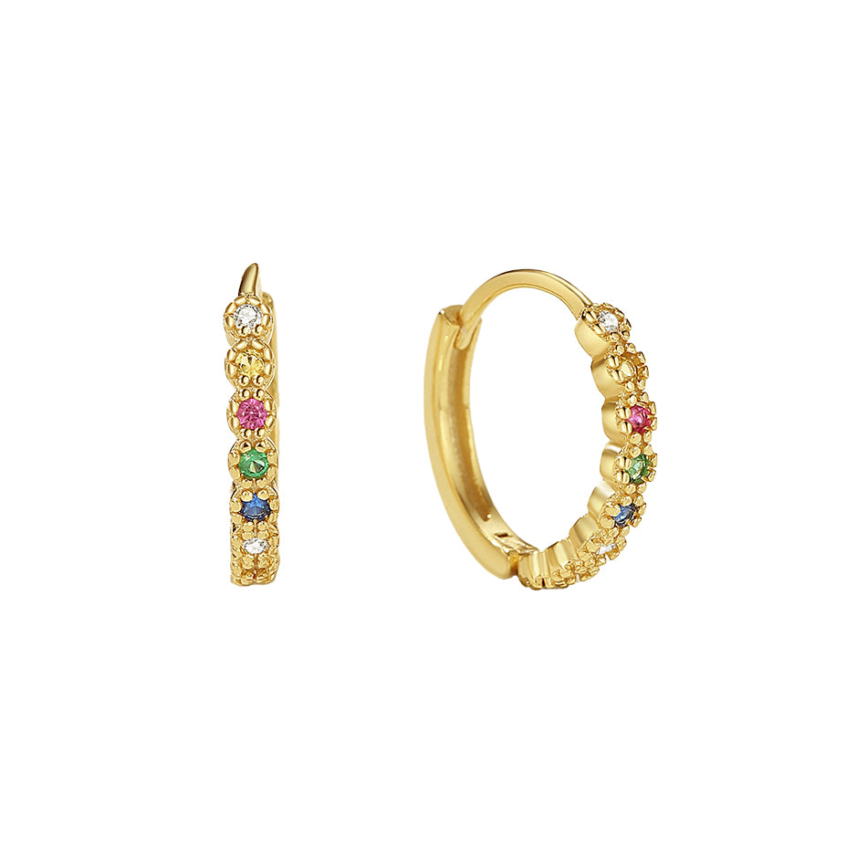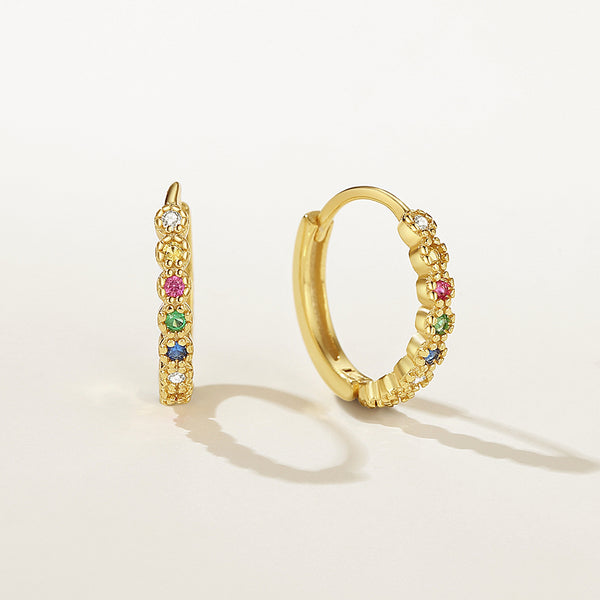 FE2339 925 Sterling Silver Rainbow Cubic Zirconia Hoop Earrings
