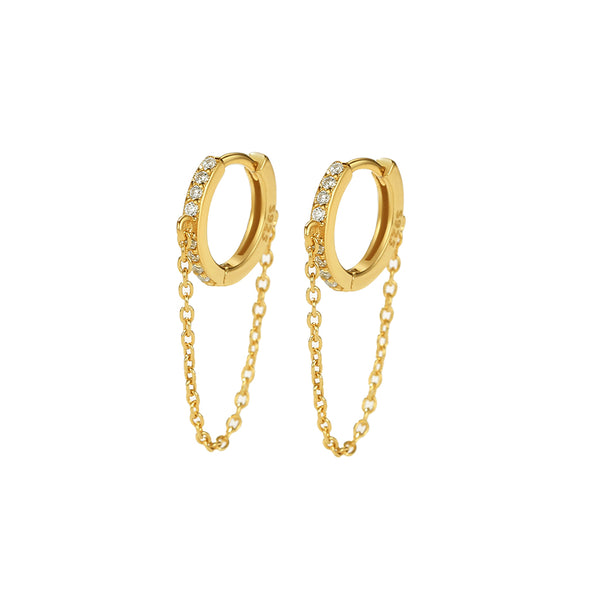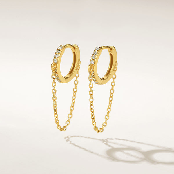 FE2378 925 Sterling Silver Zirconia Chain Hoop Earrings