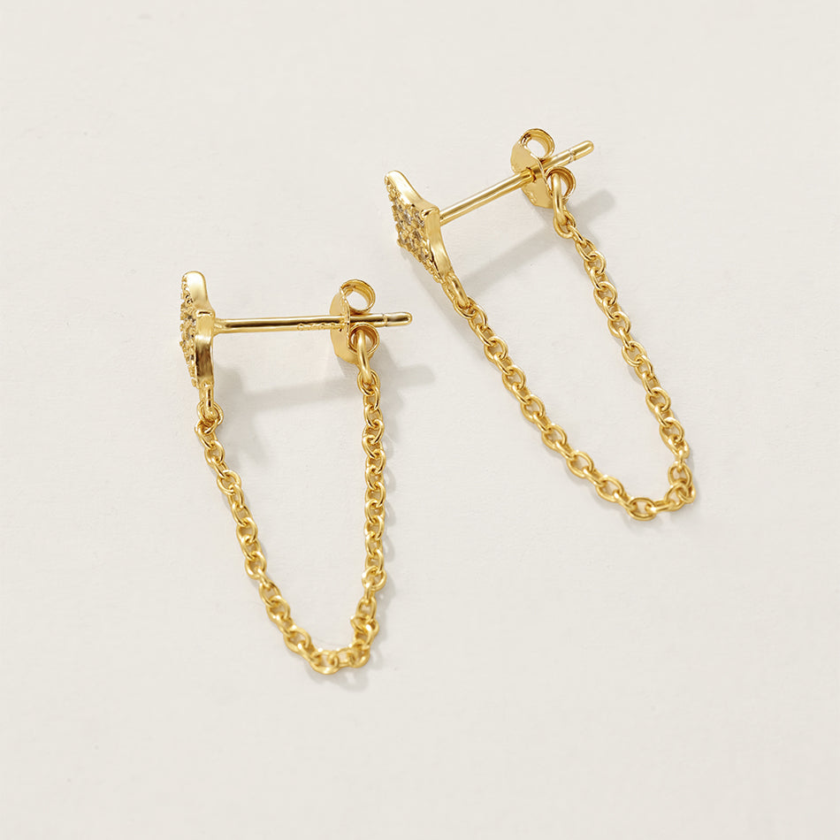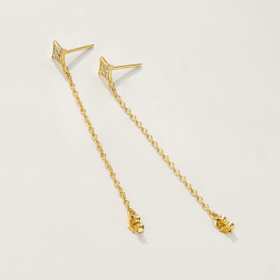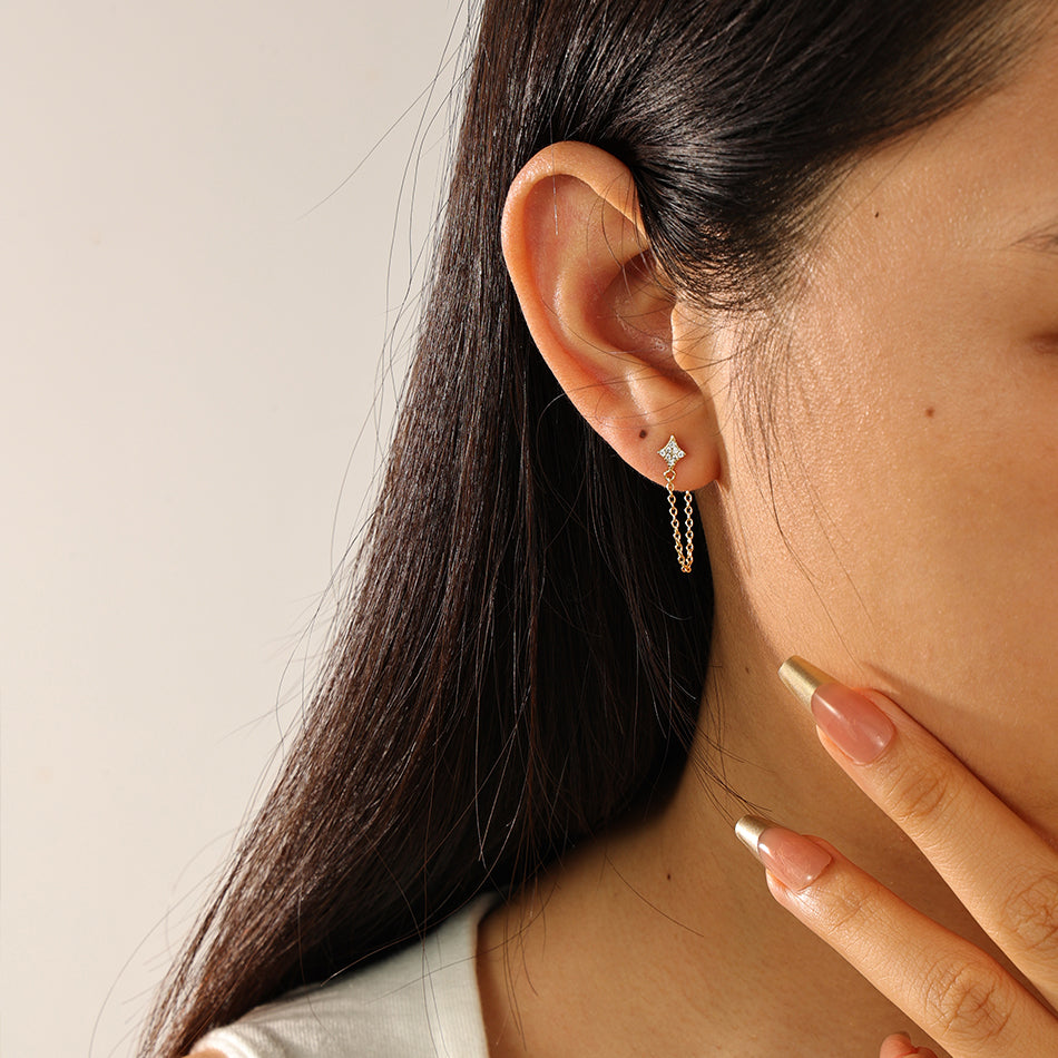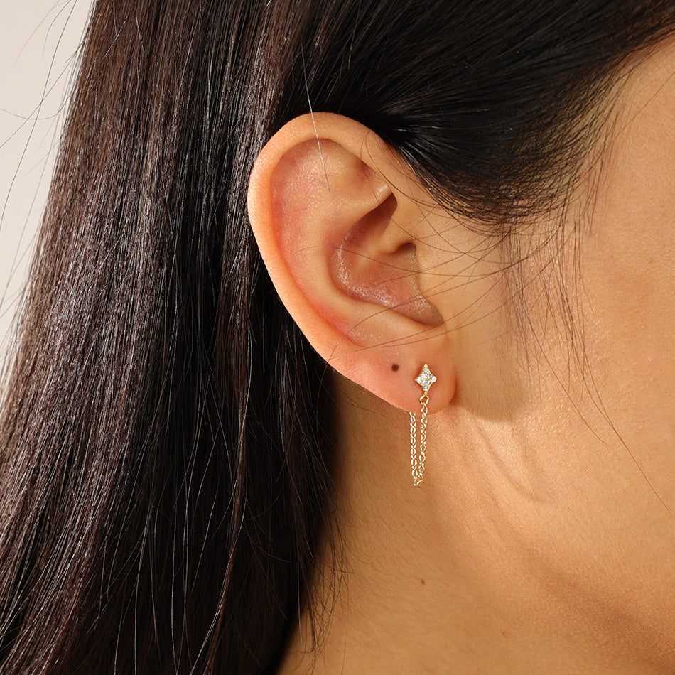FE2393 925 Sterling Silver Geometric CZ Chain Stud Earrings