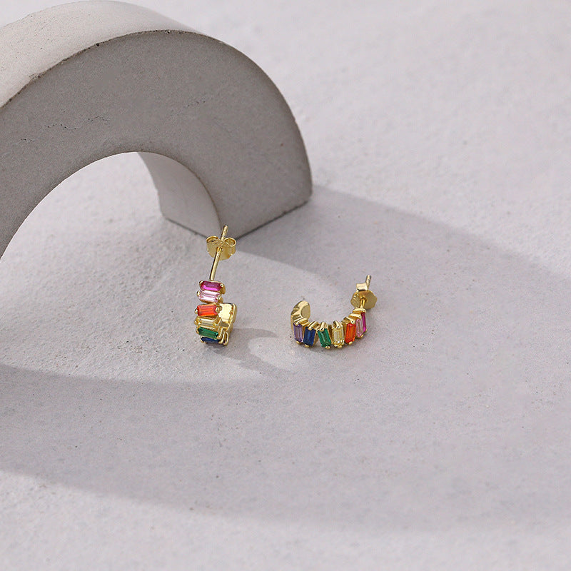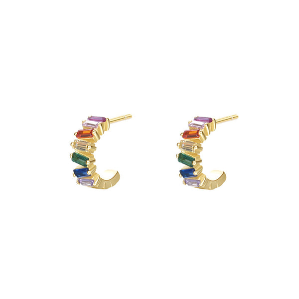 FE2477 925 Sterling Silver Dainty CZ Colorful Stone Stud Earrings