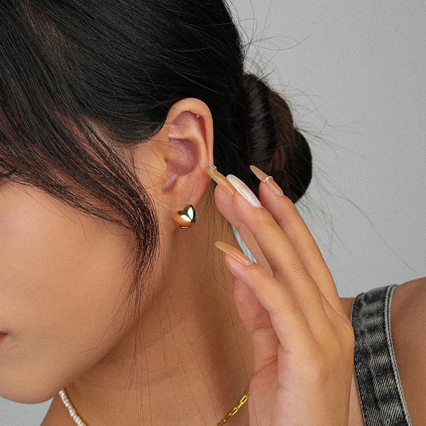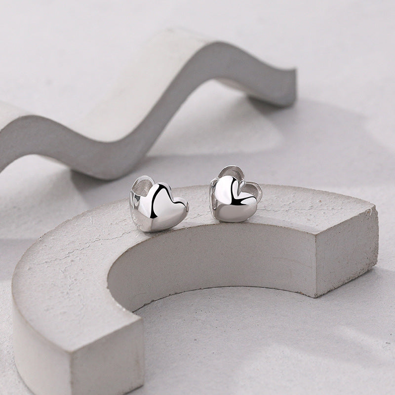 FE2499 925 Sterling Silver Three dimensional heart Stud Earrings