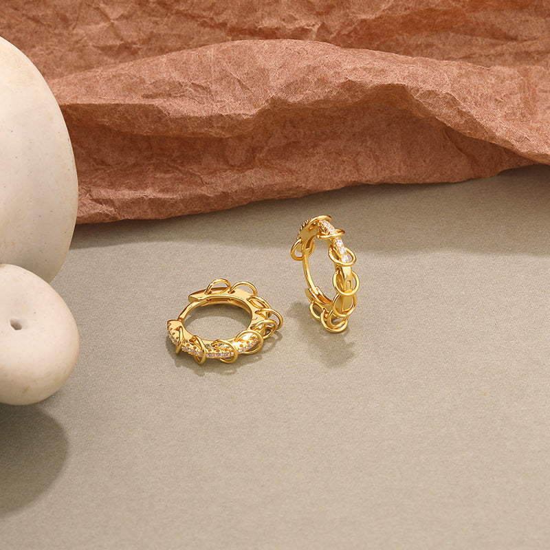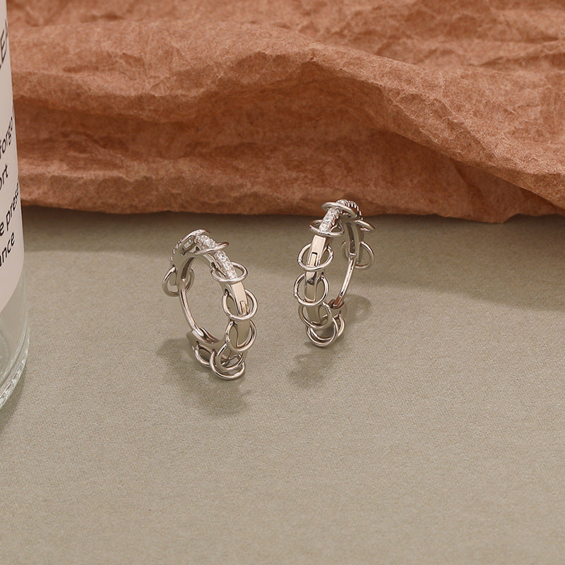 FE2517 925 Sterling Silver Retro Circle CZ Stone Hoop Earring