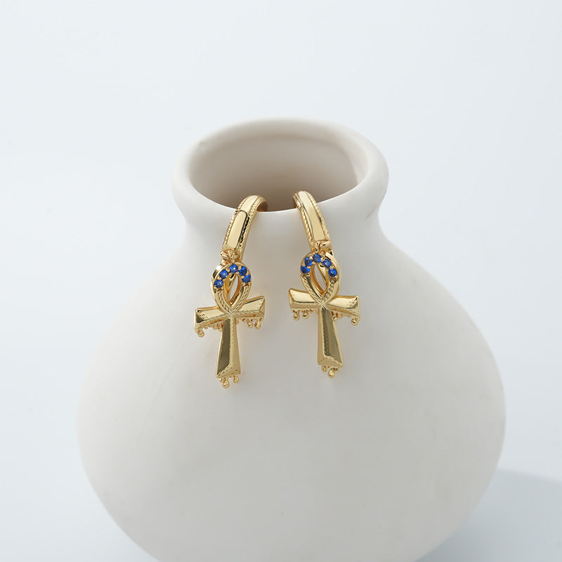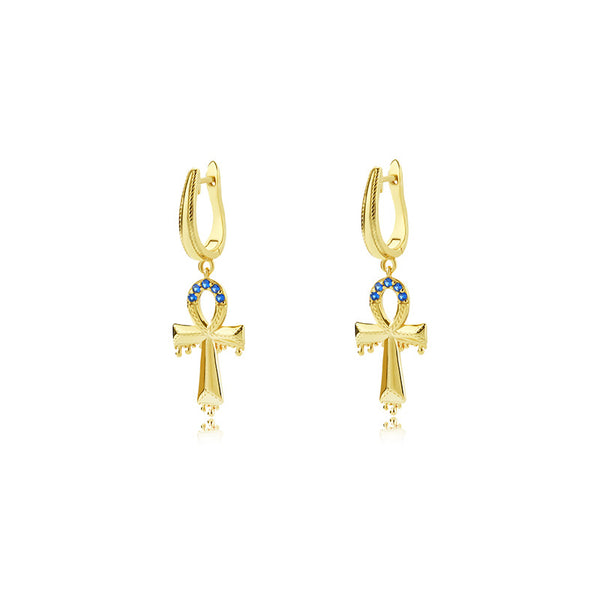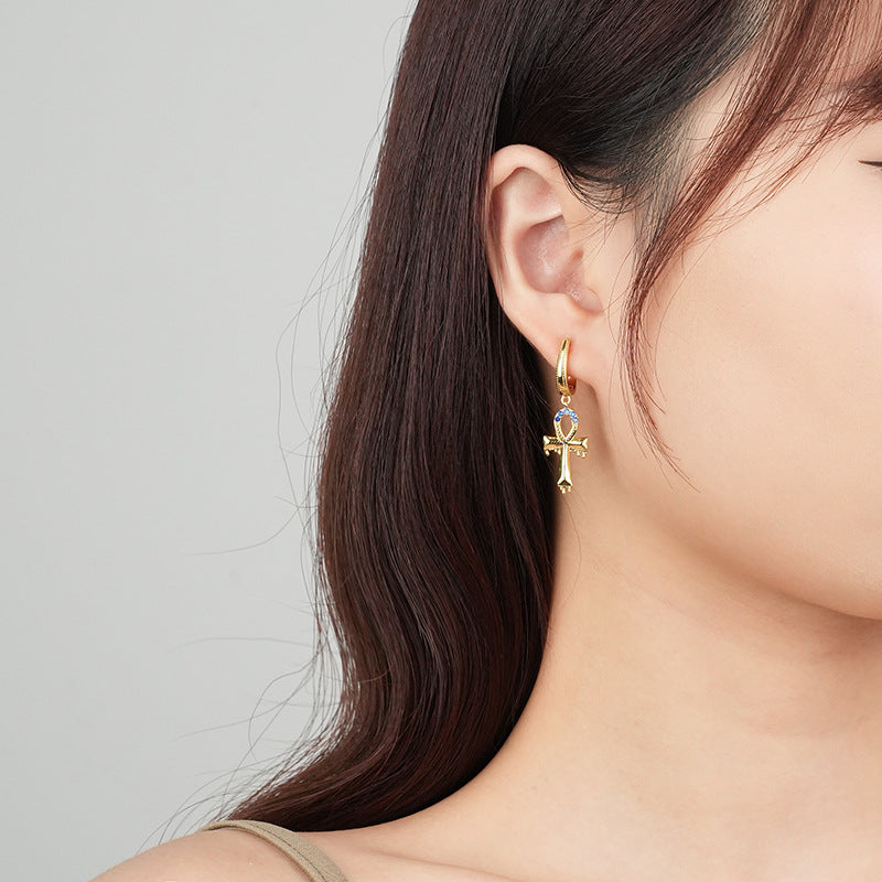 CZ Stone Cross Dangle Hoop Earring |