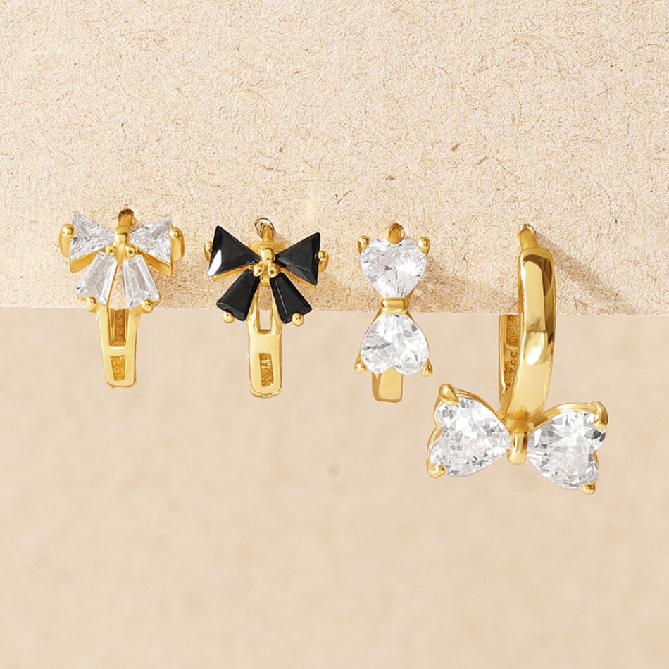 Black Cubic Zirconia Butterfly Bow Hoop Earrings |