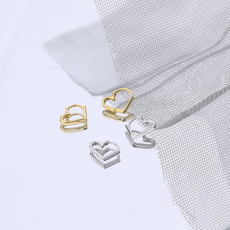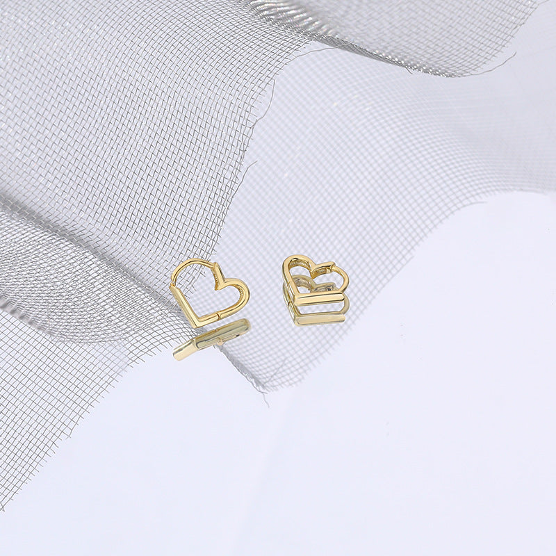 FE2579 925 Sterling Silver Dainty Love Heart Hoop Earring