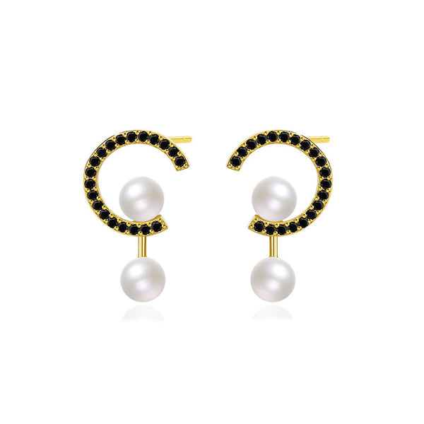 Black Zircon Pearl Dangle Stud Earring |