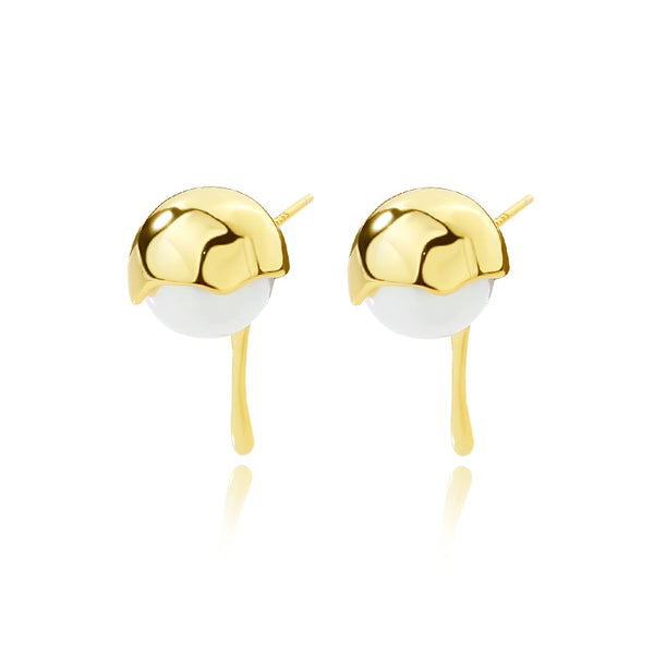 FE2614 925 Sterling Silver Lava Water Drop Pearl Stud Earring