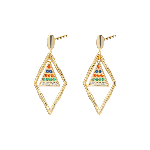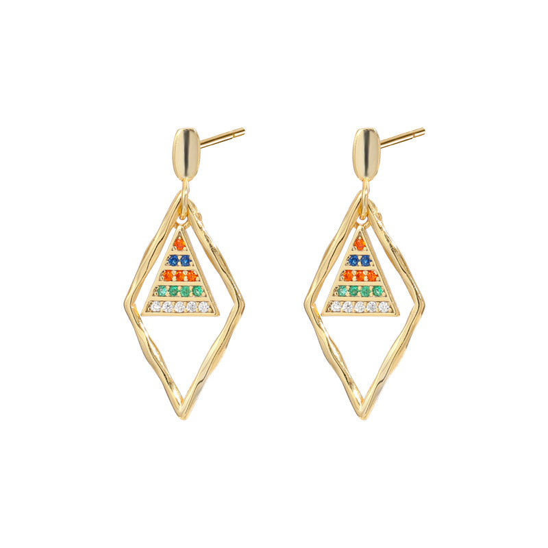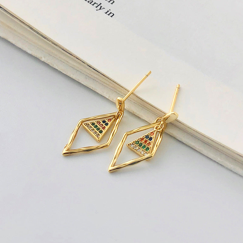 FE2639 925 Sterliang Silver Color Zircon Rhombus Dangle Stud Earring