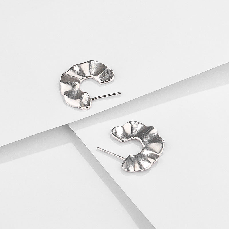 FE2635 925 Sterliang Silver Irregular Corrugation C Shape Stud Earring