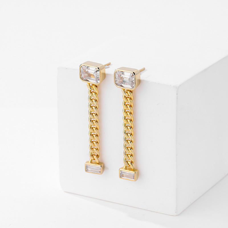 FE2629 925 Sterliang Silver Twist Chain Zircon Dangle Stud Earring