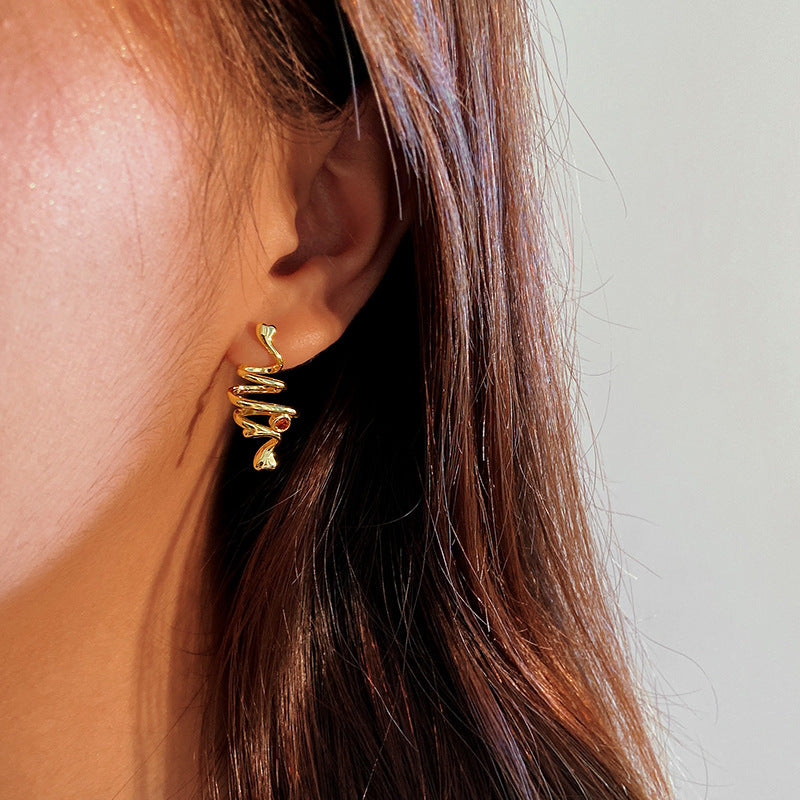 FE2644 925 Sterliang Silver Spiral Love Heart Red Zircon Stud Earring
