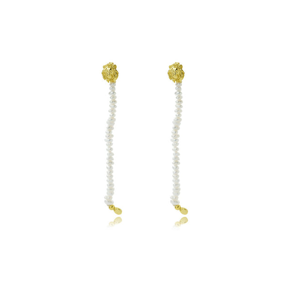 Vintage Lion Long Rice Pearl Dangle Stud Earring |