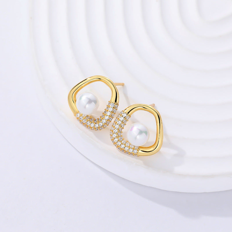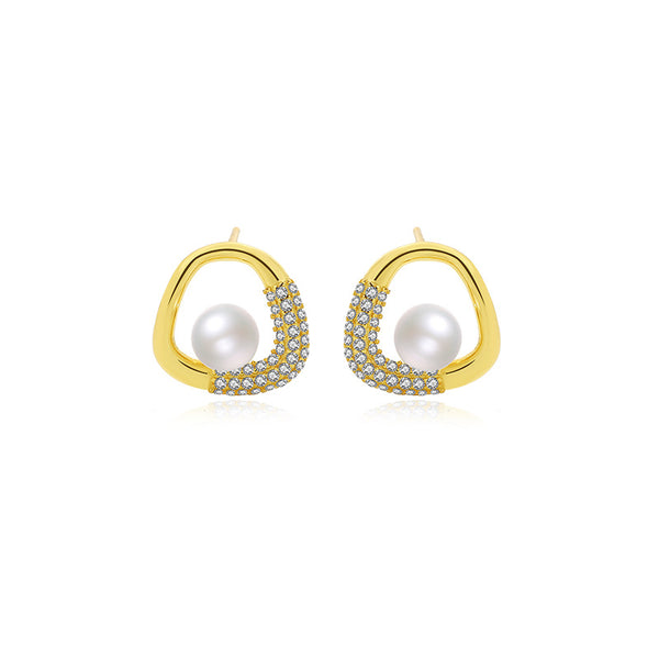 Cubic Zirconia Shell Pearl Stud Earrings |