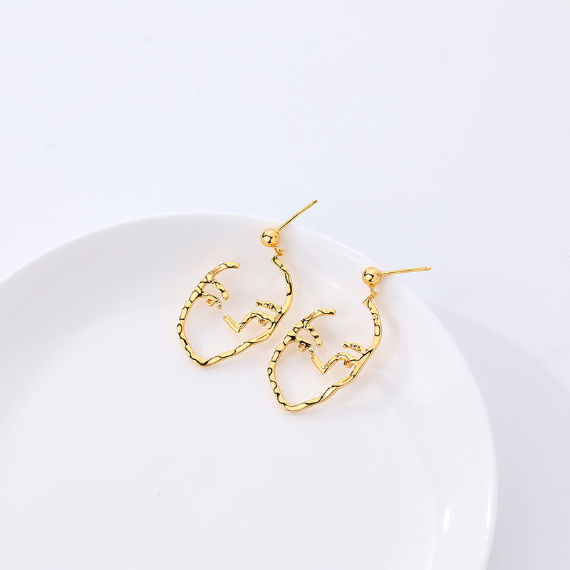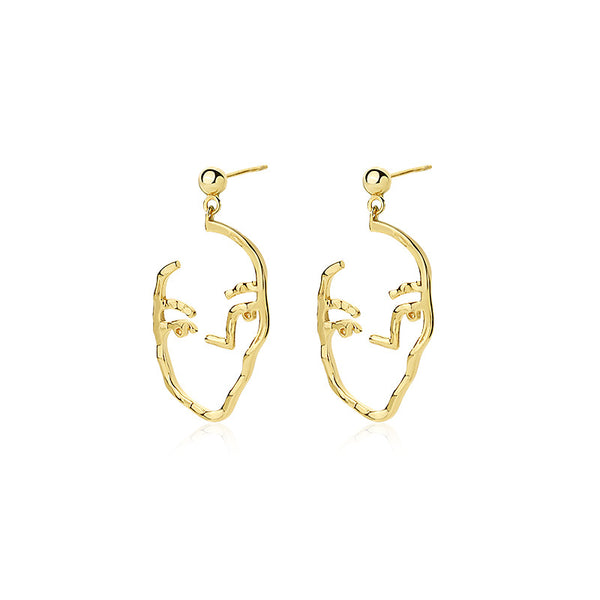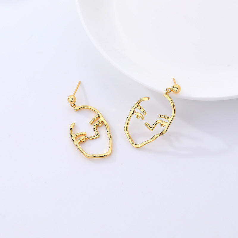 FE2663 925 Sterling Silver Retro Hollow Abstract Face Stud Earrings