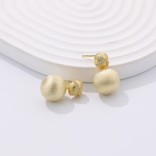 Brushed Frosted Ball Stud Earrings |