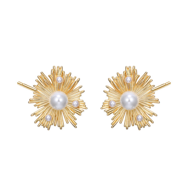 FE2679 925 Sterling Silver Light Luxury Shell Pearl Stud Earrings