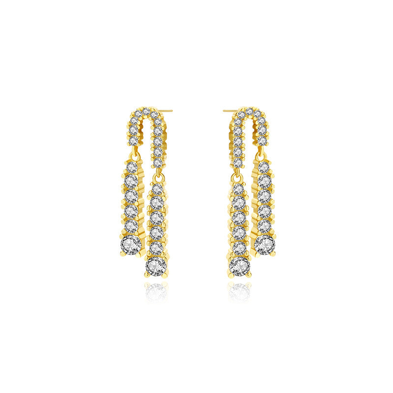 FE2690 925 Sterliang Silver Dainty Asymmetric Tassel Zirconia Dangle Stud Earring