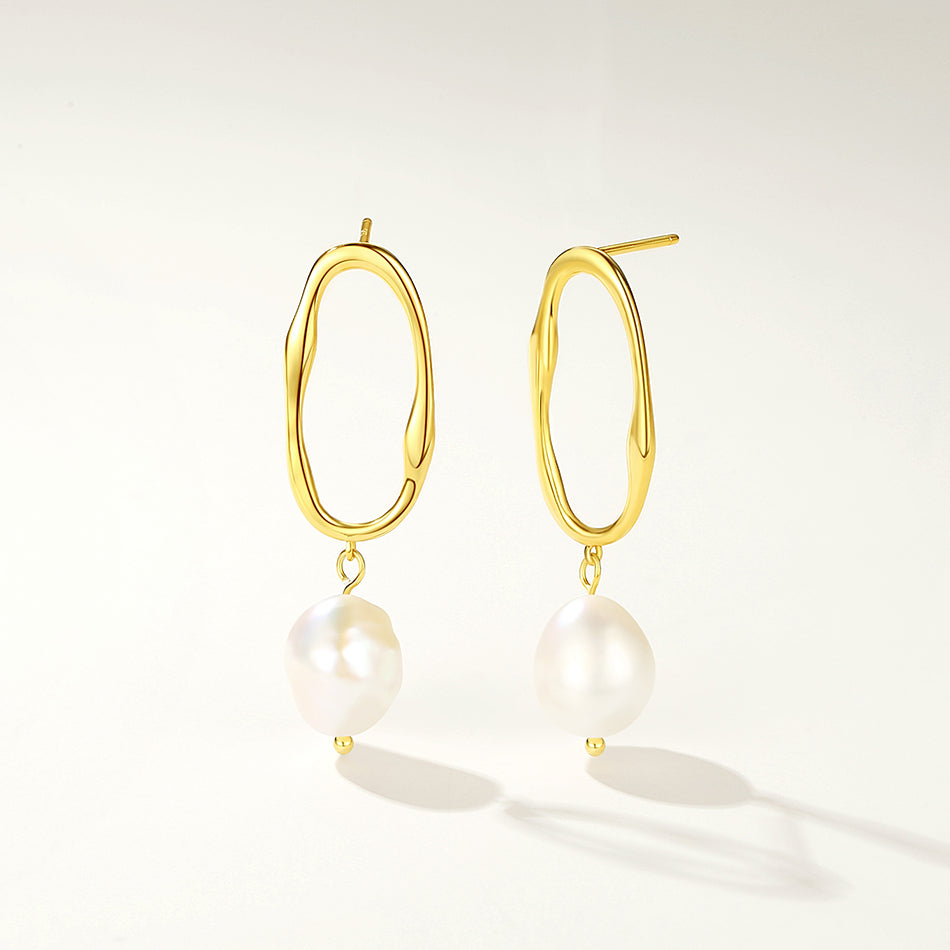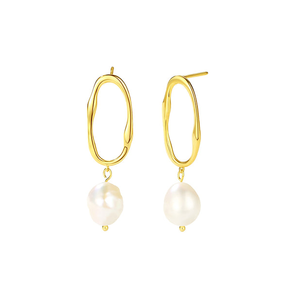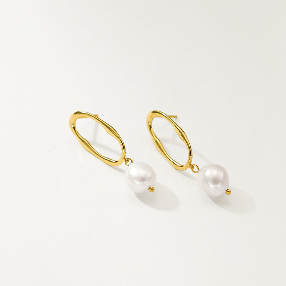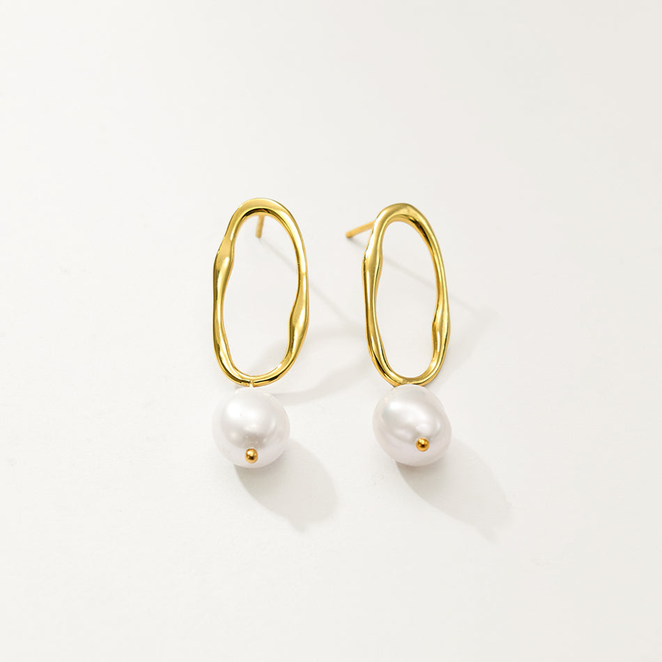 FE2709 925 Sterling Silver Hollow Hoop Pearl Dangle Earring