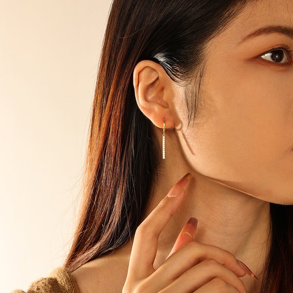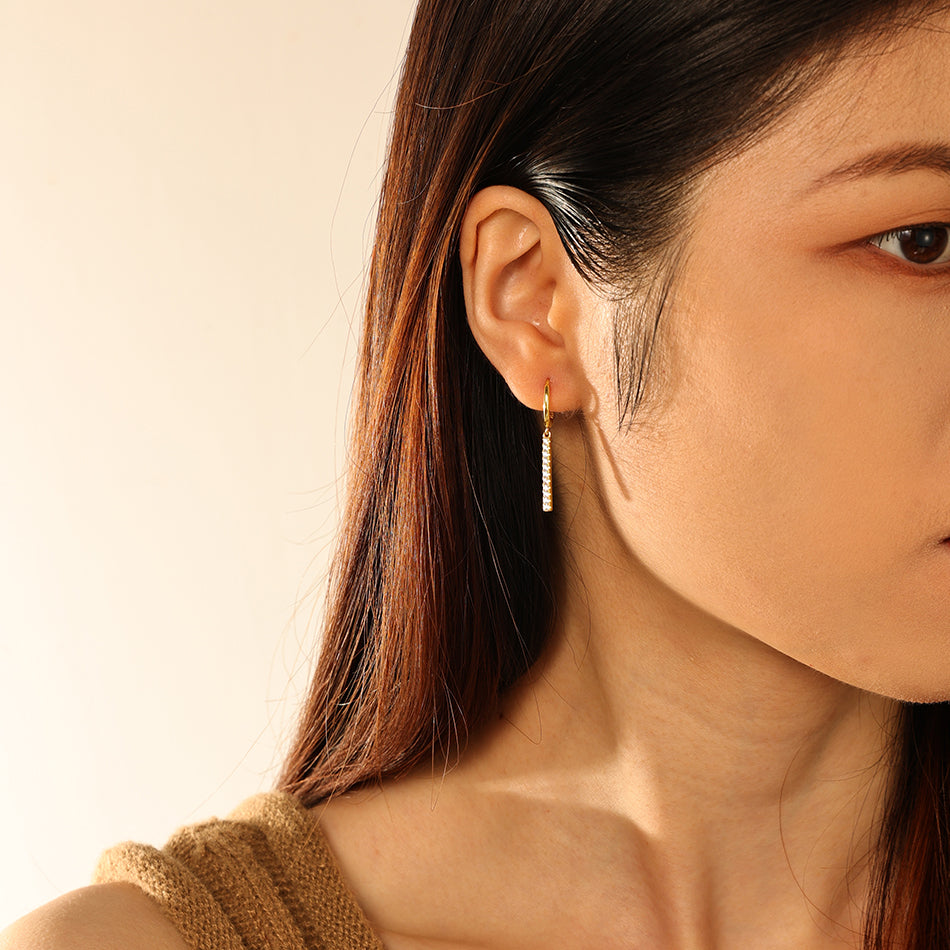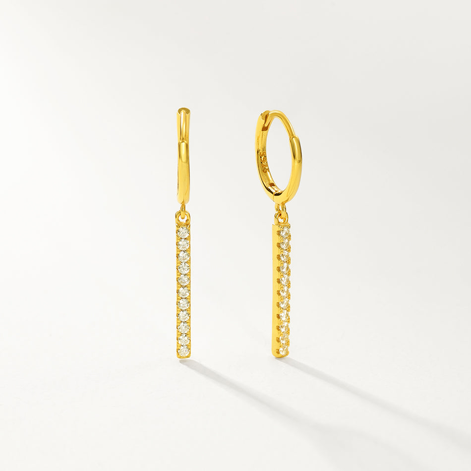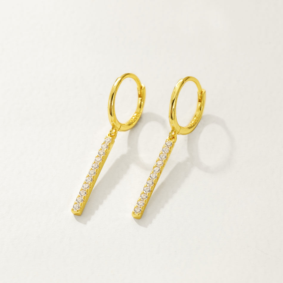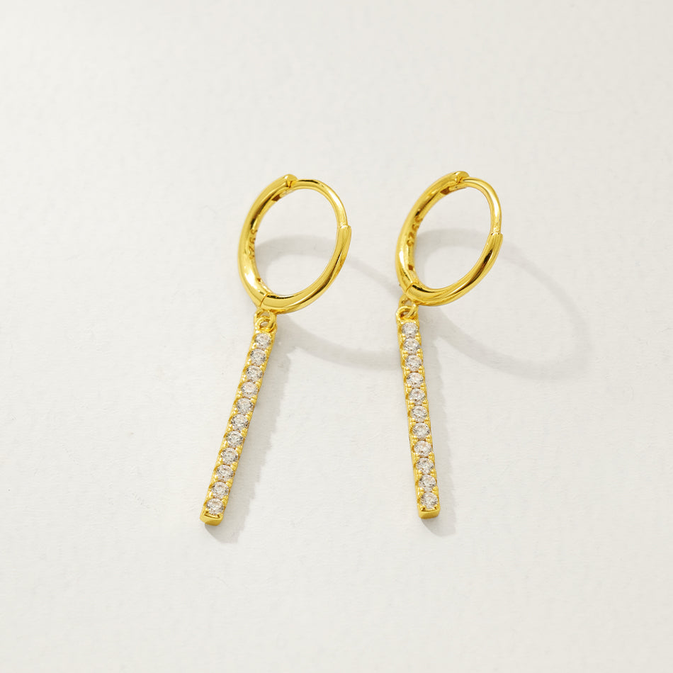 FE2750 925 Sterling Silver Cubic Zirconia Square Bar Dangle Earrings