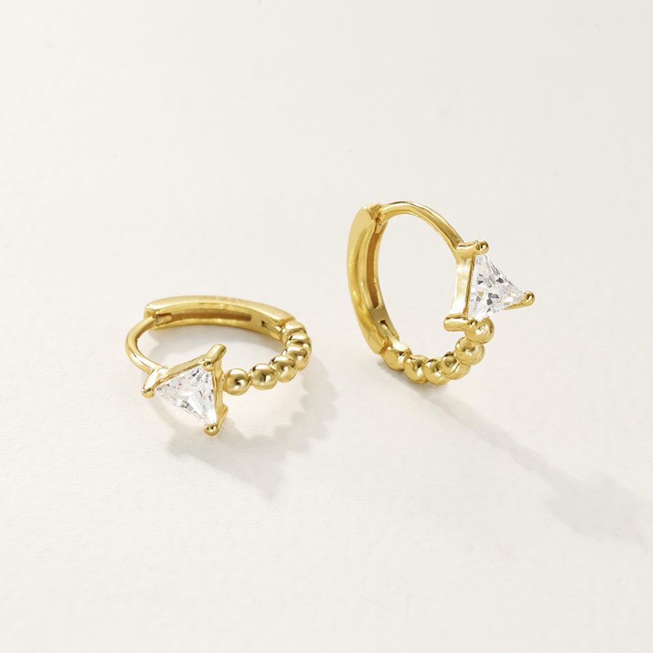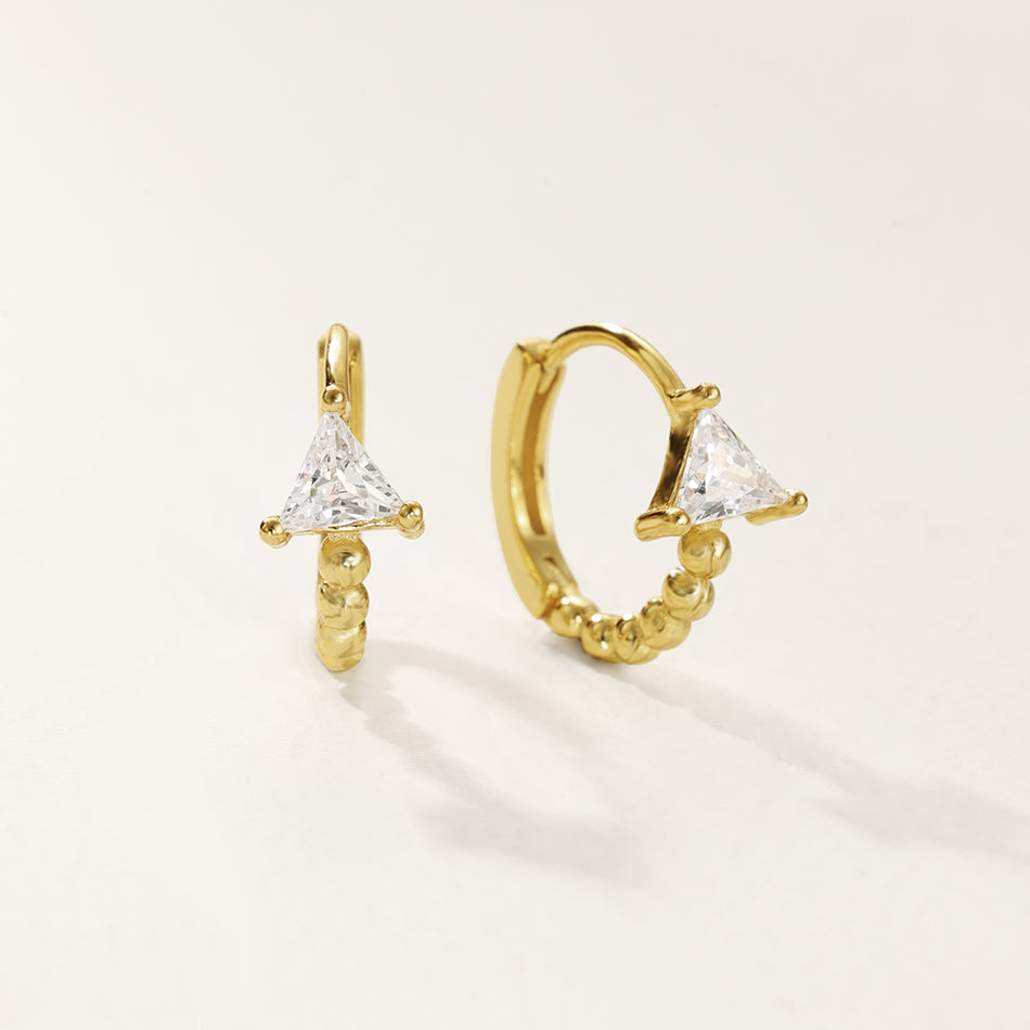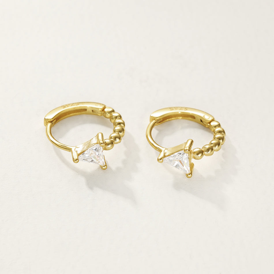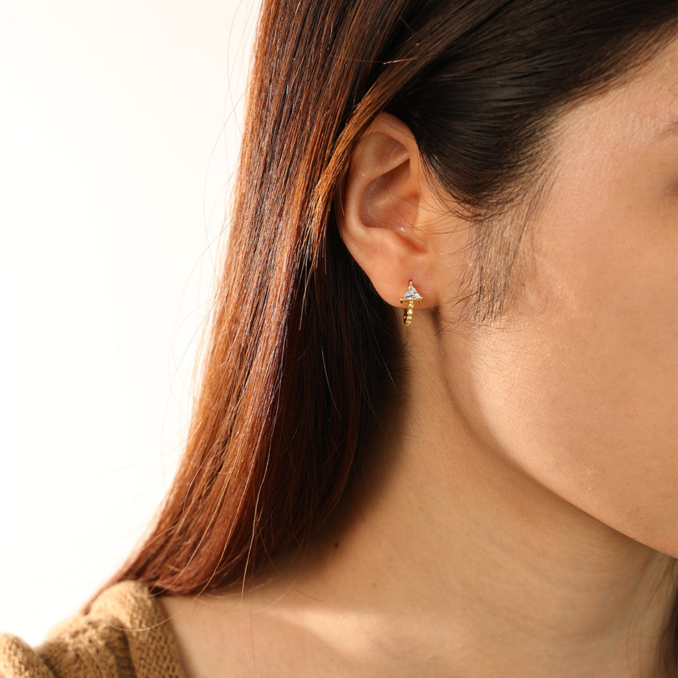 FE2758 925 Sterling Silver Geometric Triangle CZ Hoop Earring