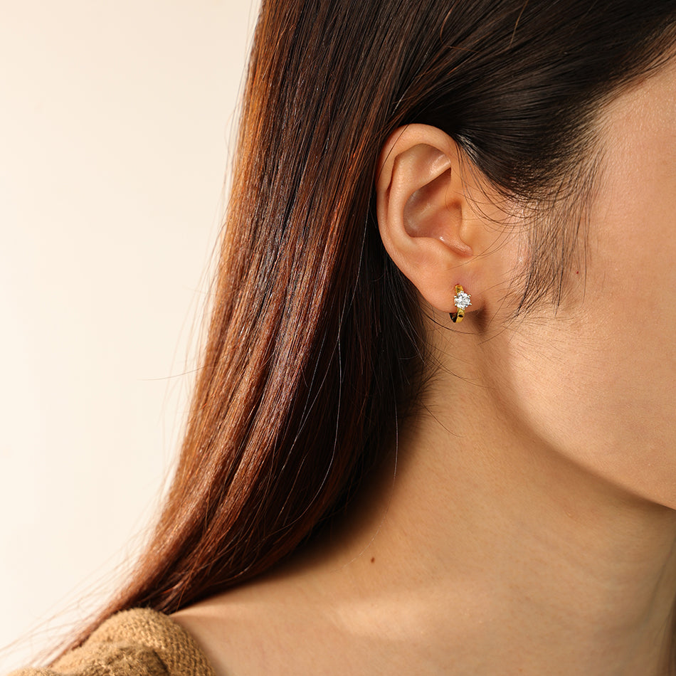 FE2802 925 Sterling Silver Cubic Zirconia Hoop Earring