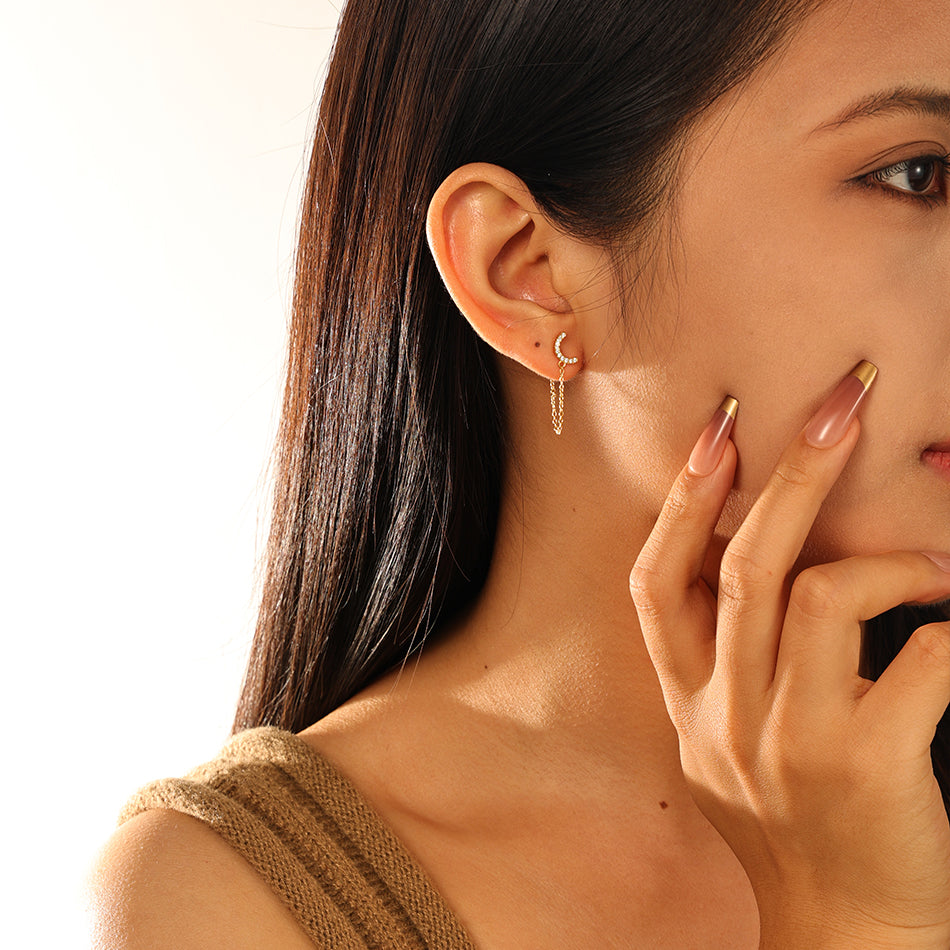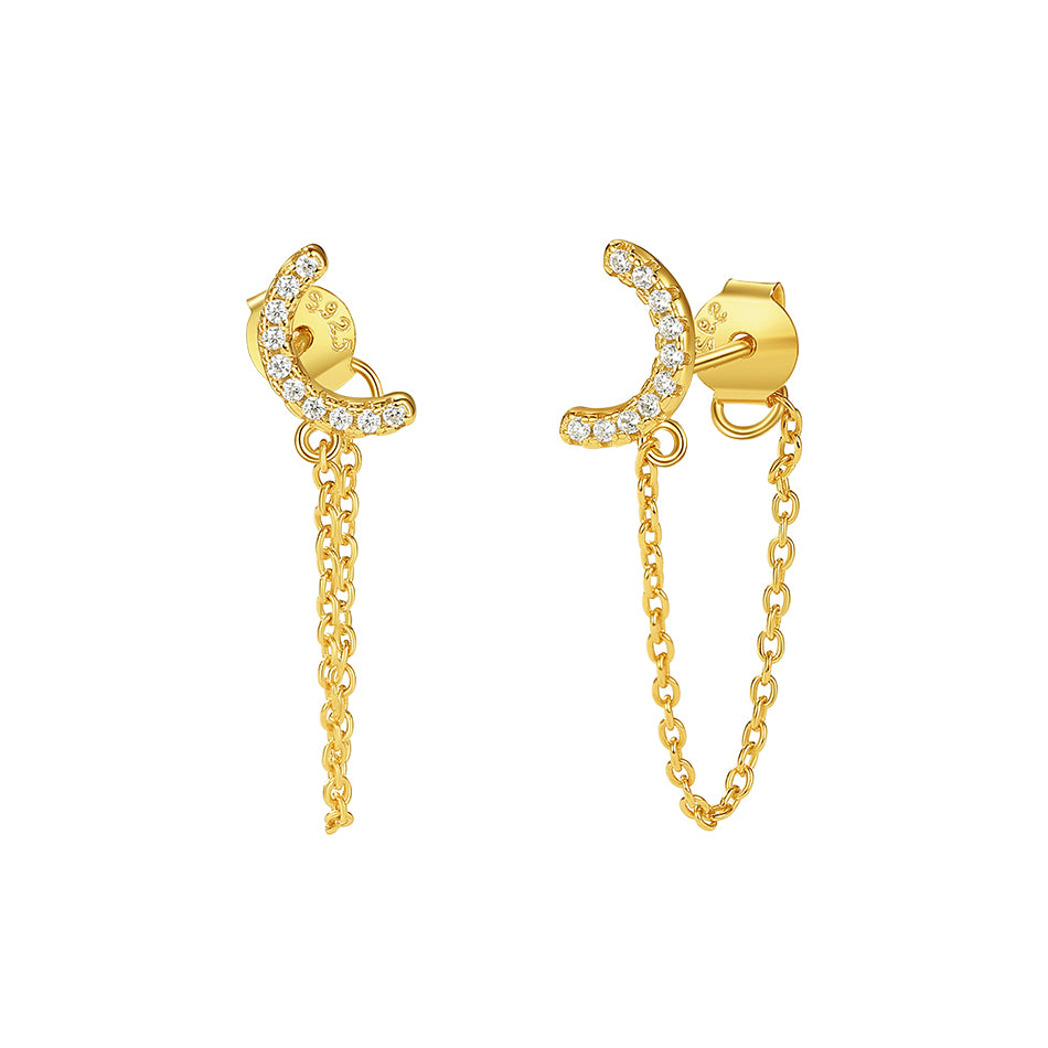 FE2804 925 Sterling Silver Crescent Chain Earring