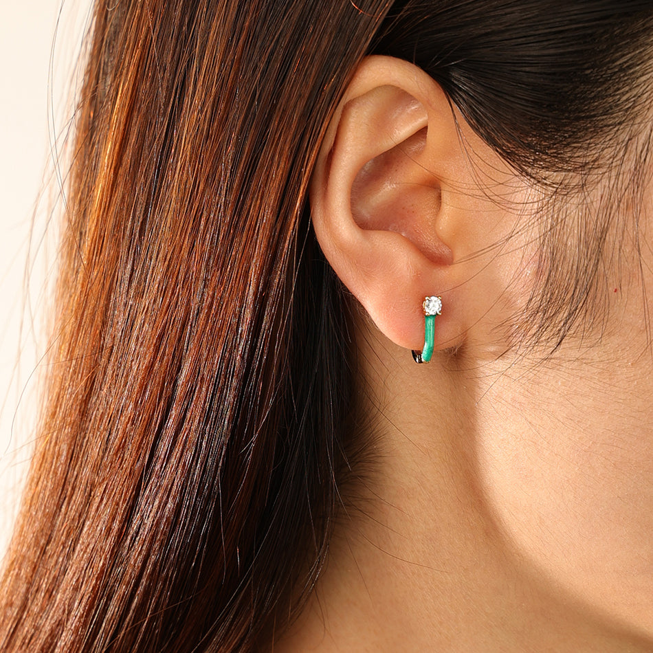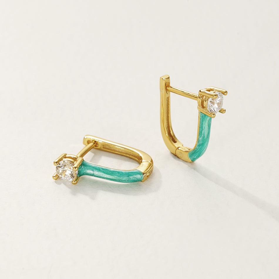 FE2807 925 Sterling Silver Enamel U Shape Hoop Earrings
