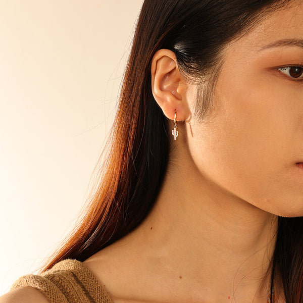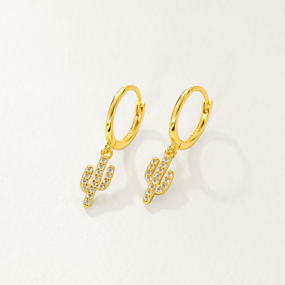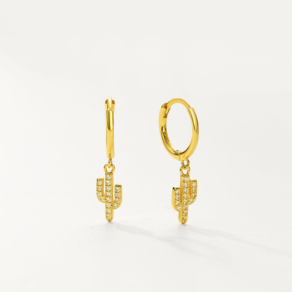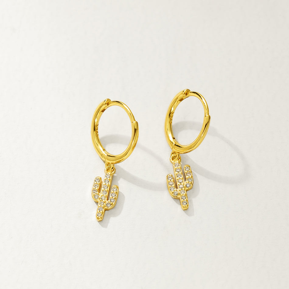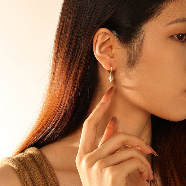 Pave Cubic Zirconia Cactus Dangle Earrings |