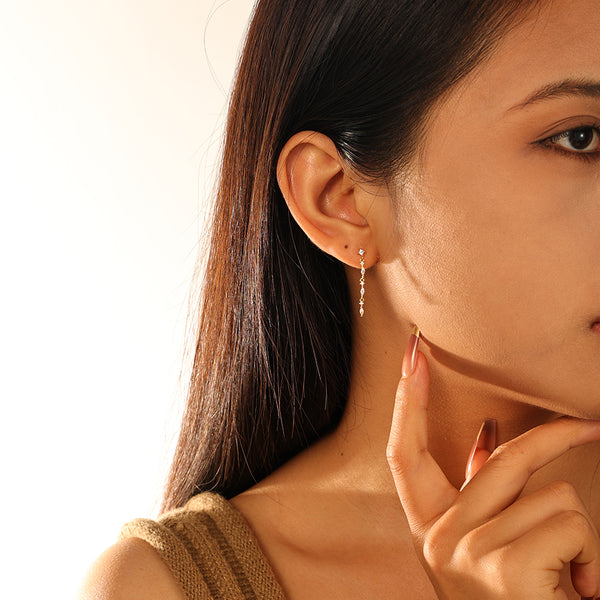 Marquise Cubic Zirconia Long Chain Stud Earring |