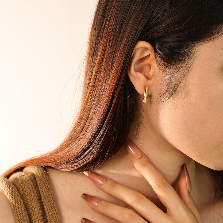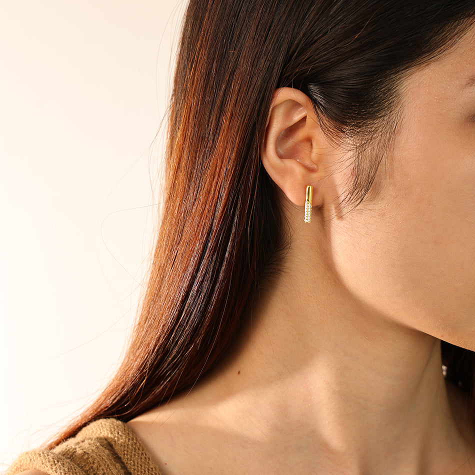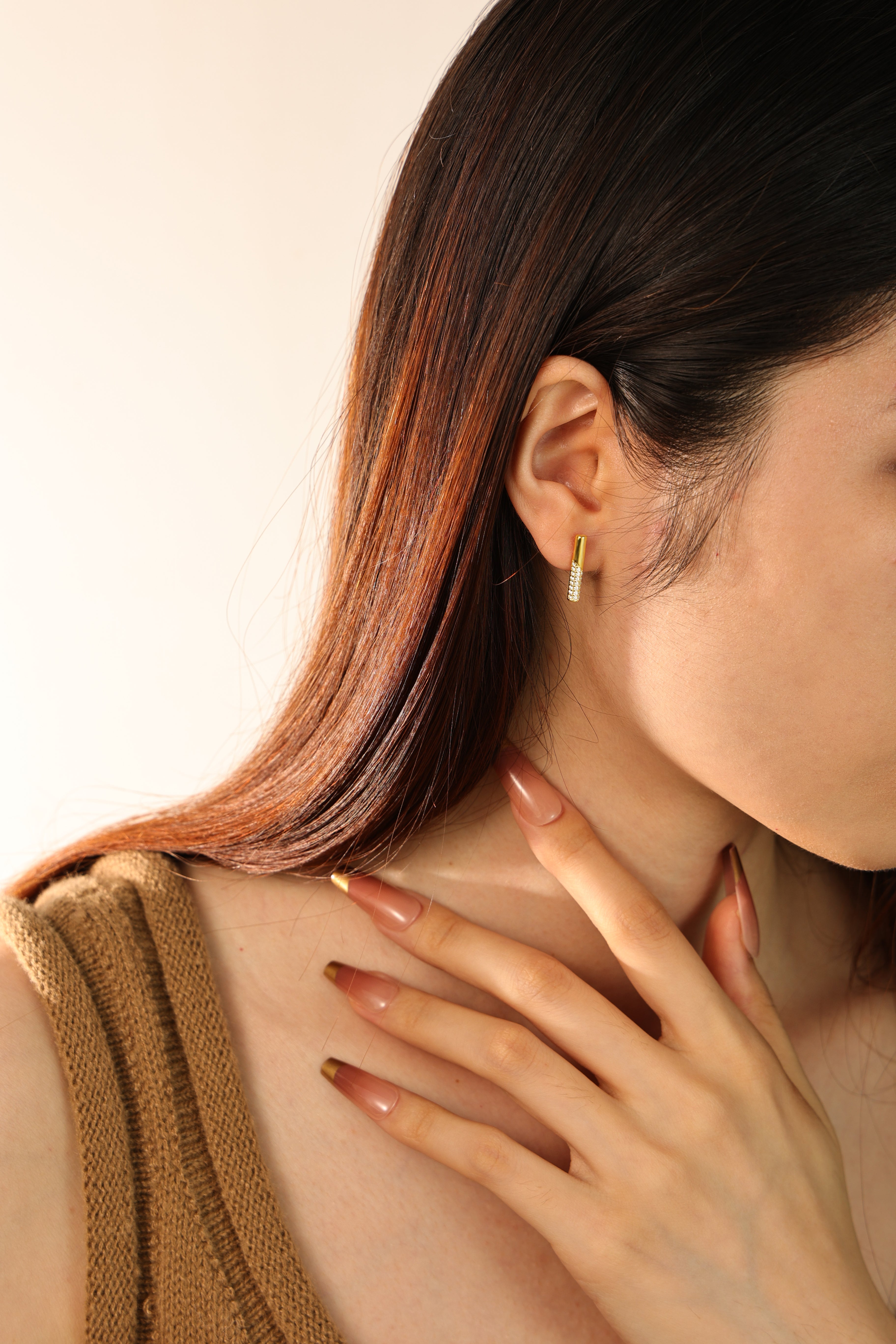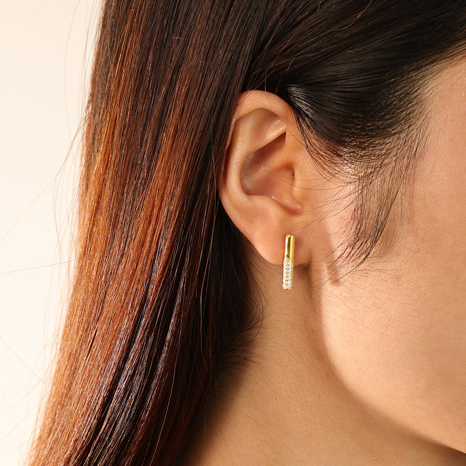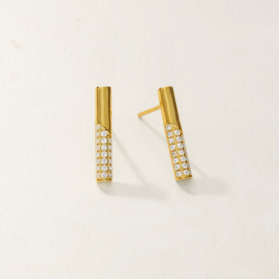 FE2849 925 Sterling Silver Cubic Zirconia Bar Stud Earring
