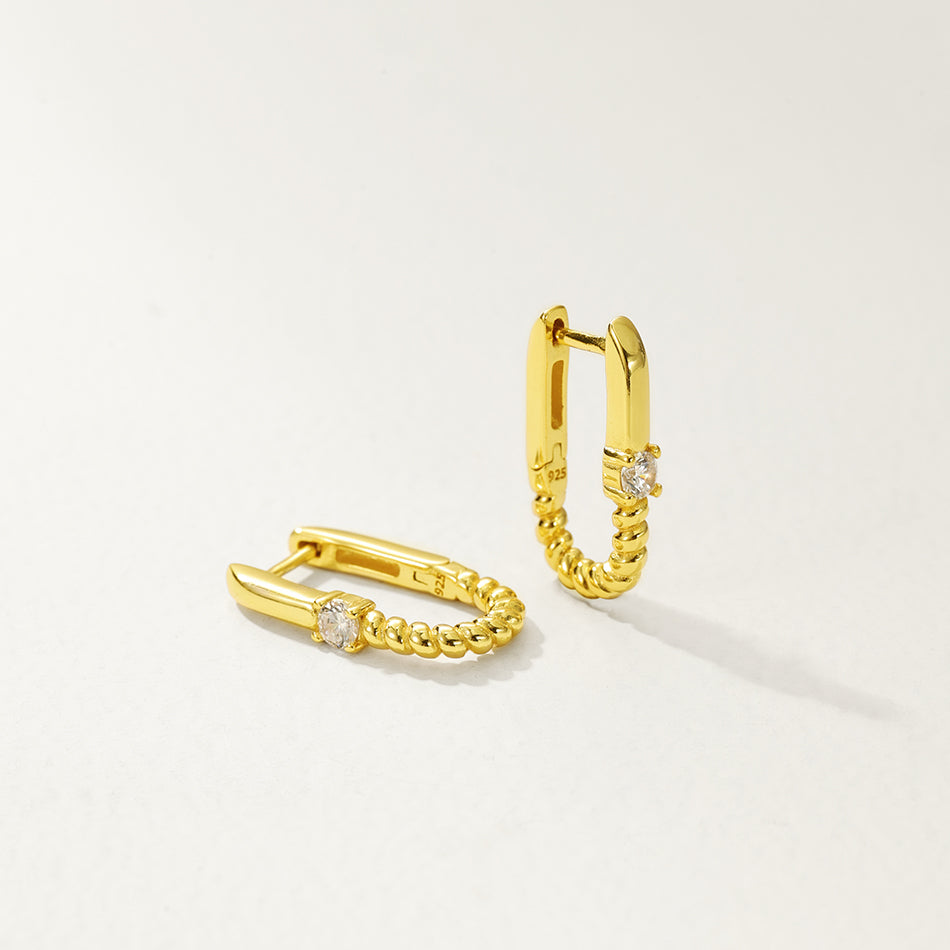FE2861 925 Sterling Silver Zircon Twist Hoop Earring