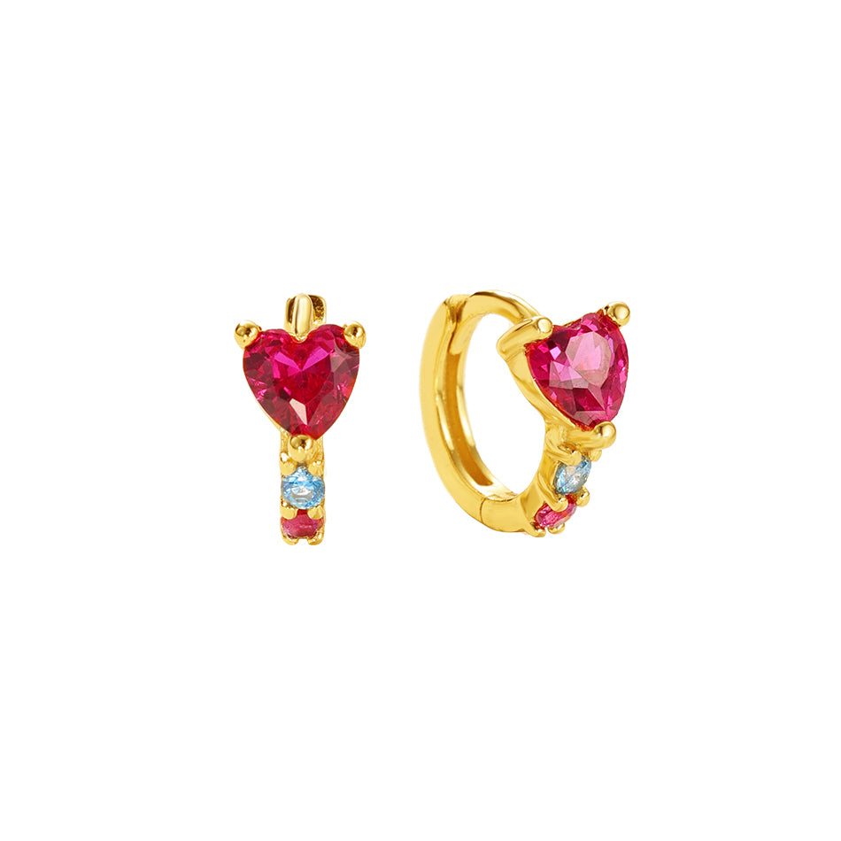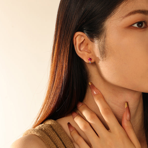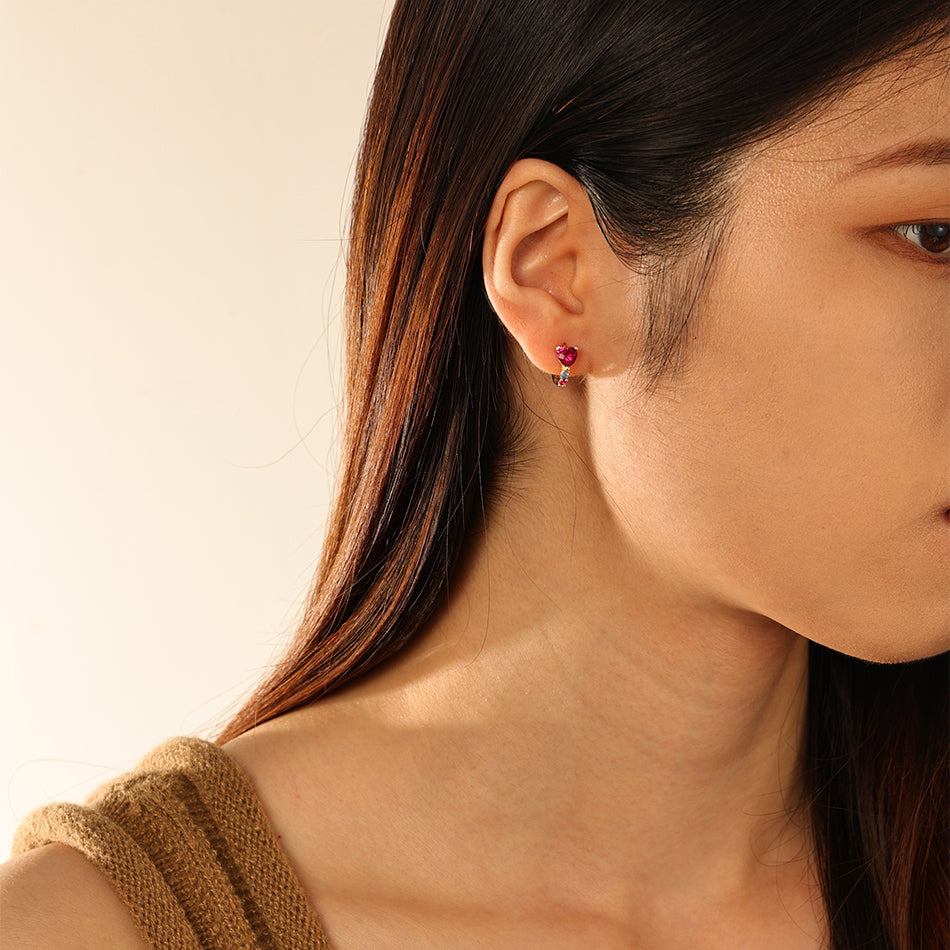 FE2866 925 Sterling Silver Heart Ruby Hoop Earrings