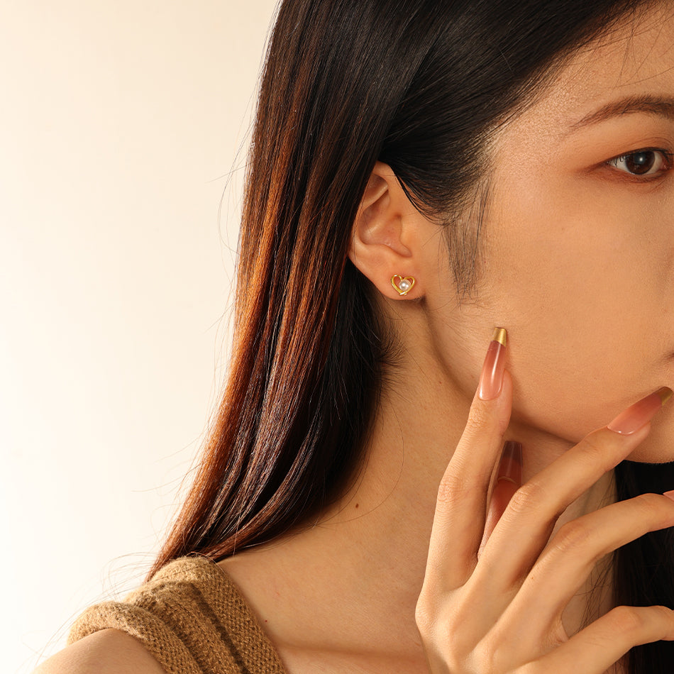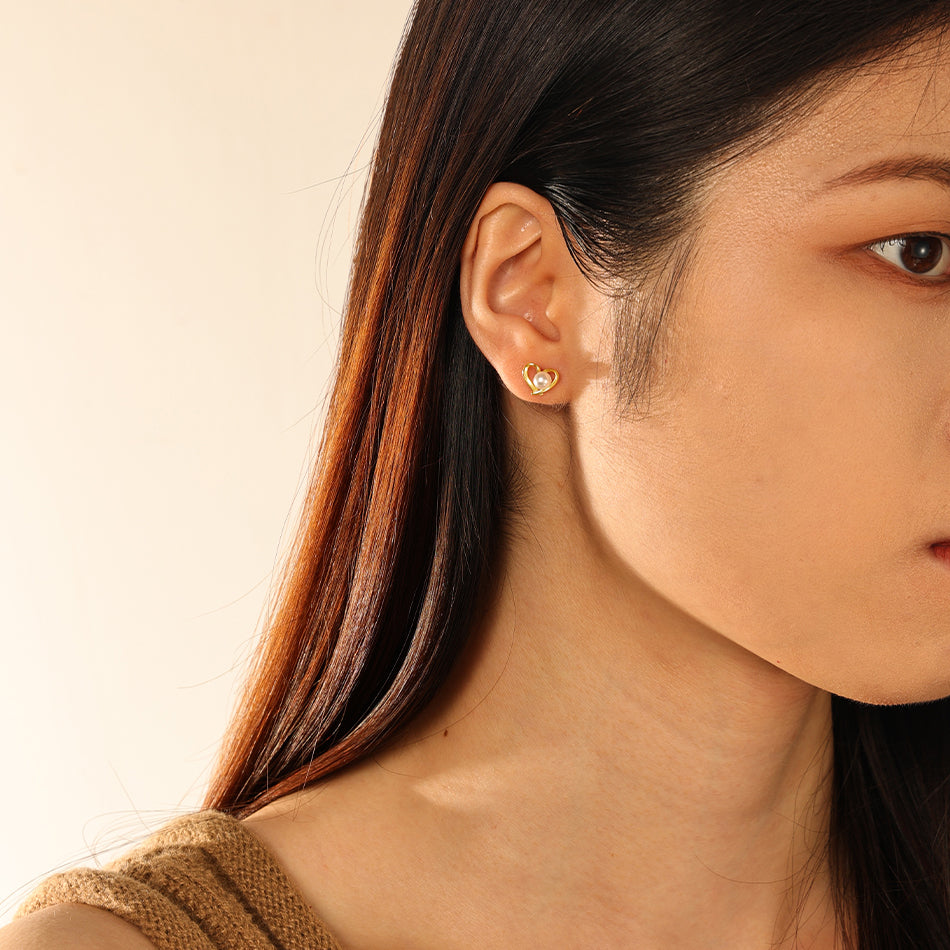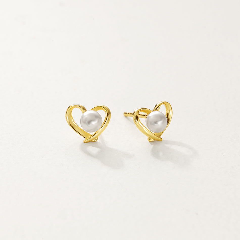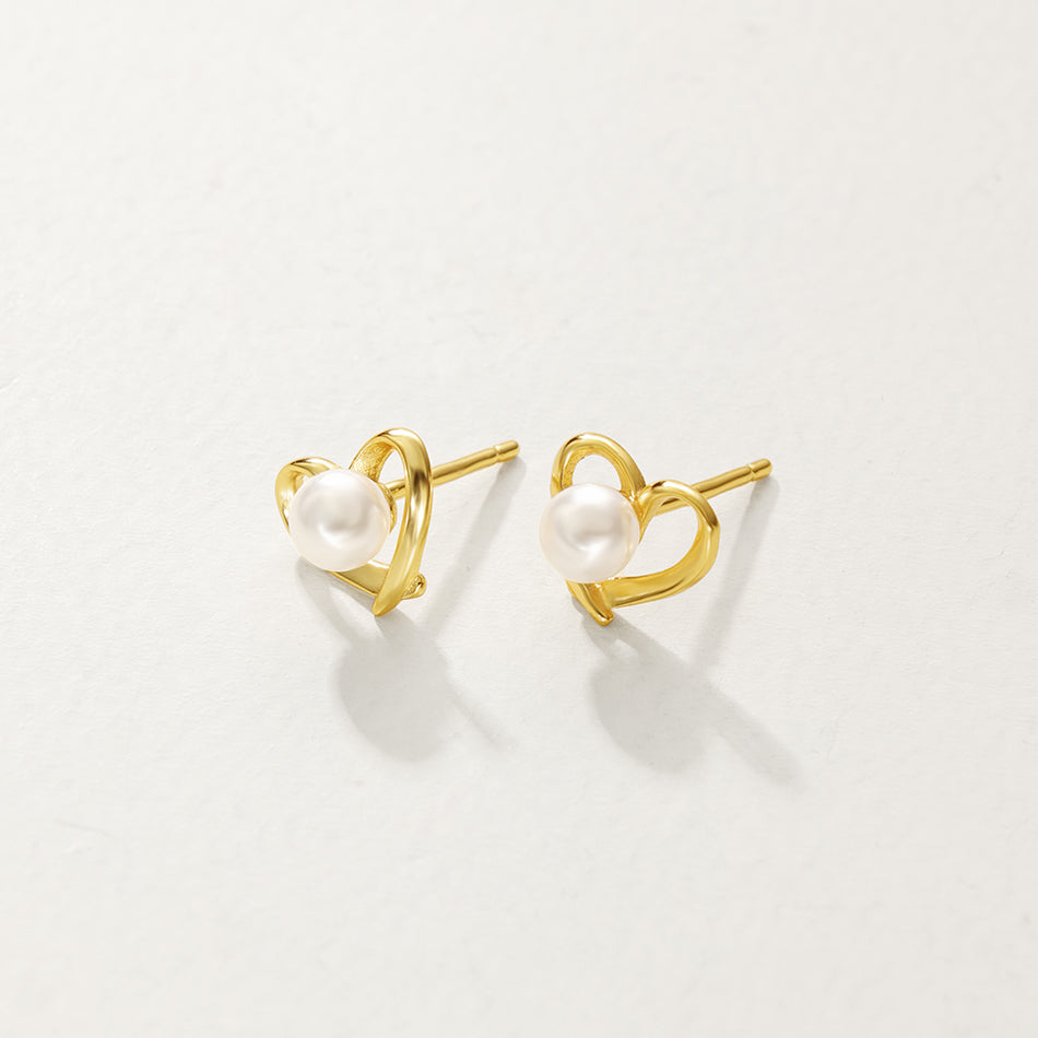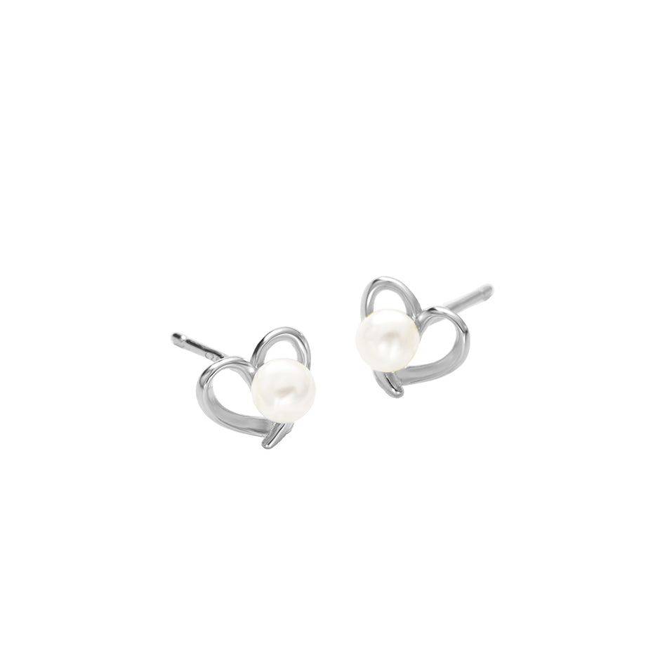 FE2913 925 Sterling Silver Pearl Heart Mini Stud Earring