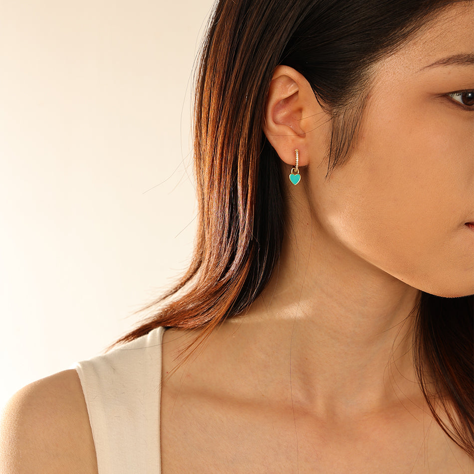 Enamel Heart Dangle Earrings