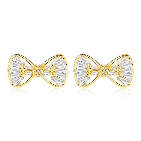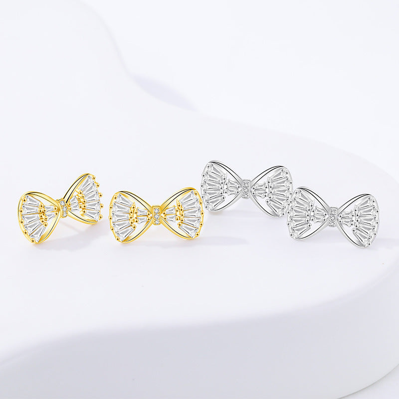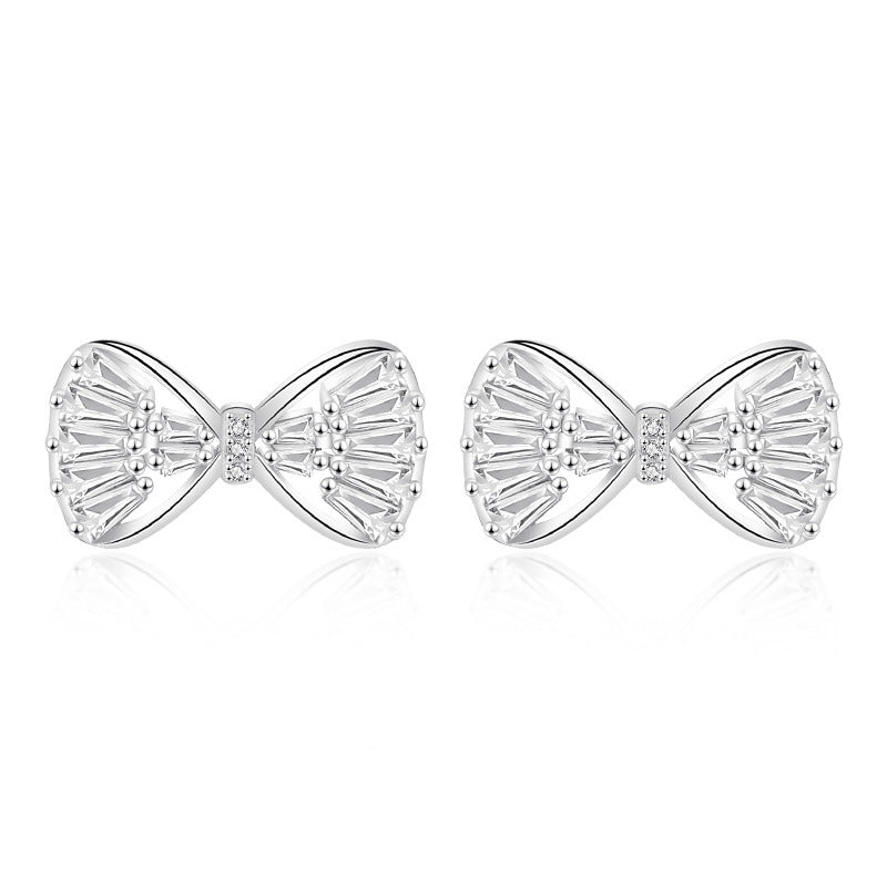 FE3023 925 Sterling Silver Elegant Bow Stud Earrings