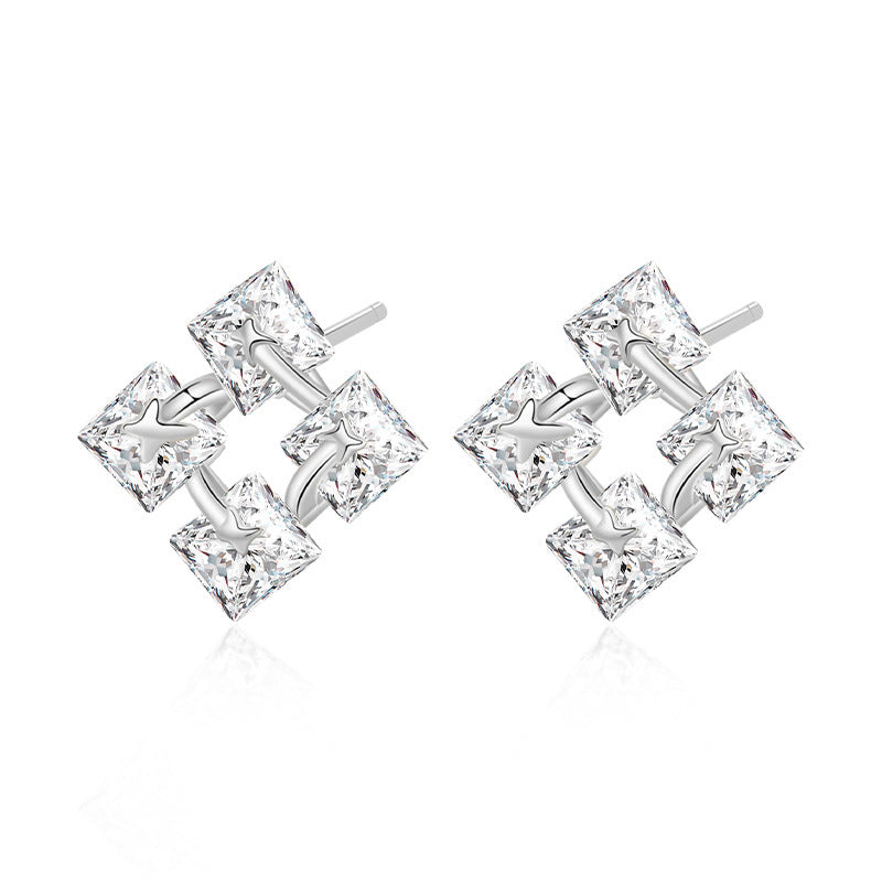 FE3024 925 Sterling Silver Square Zirconia Stud Earrings