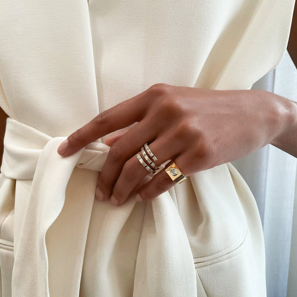 TRIPLE SPIRAL ZIRCONIA BAGUETTE RING |