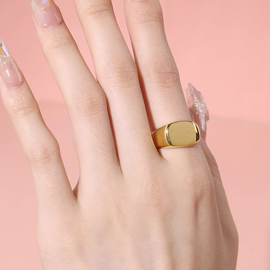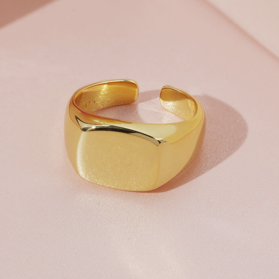 FJ0823 925 Sterling Silver Rectangle Solid Chunky Signet Open Ring