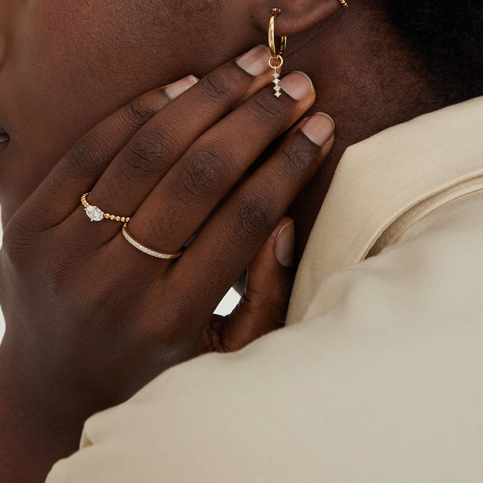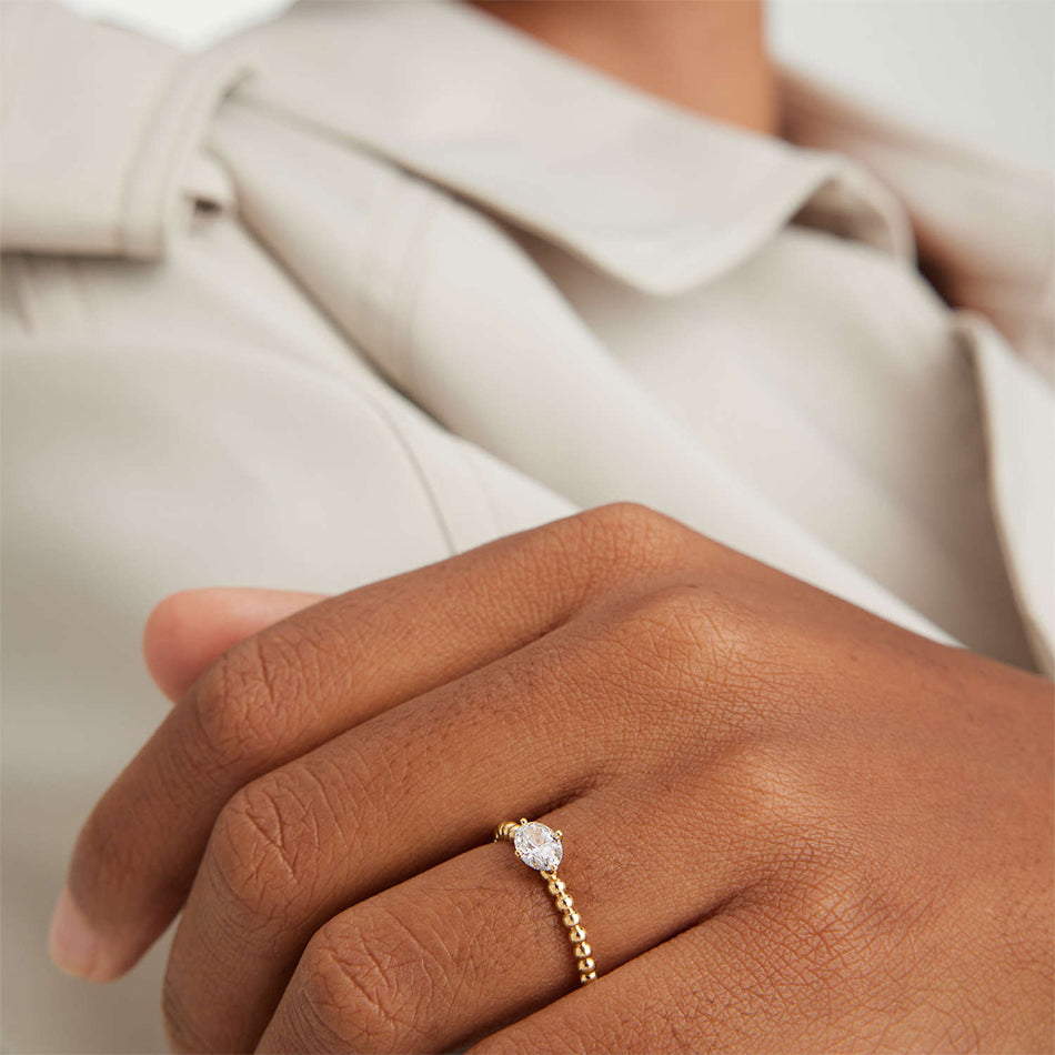 Beaded Oval Cubic Zirconia Women Gold Rings
