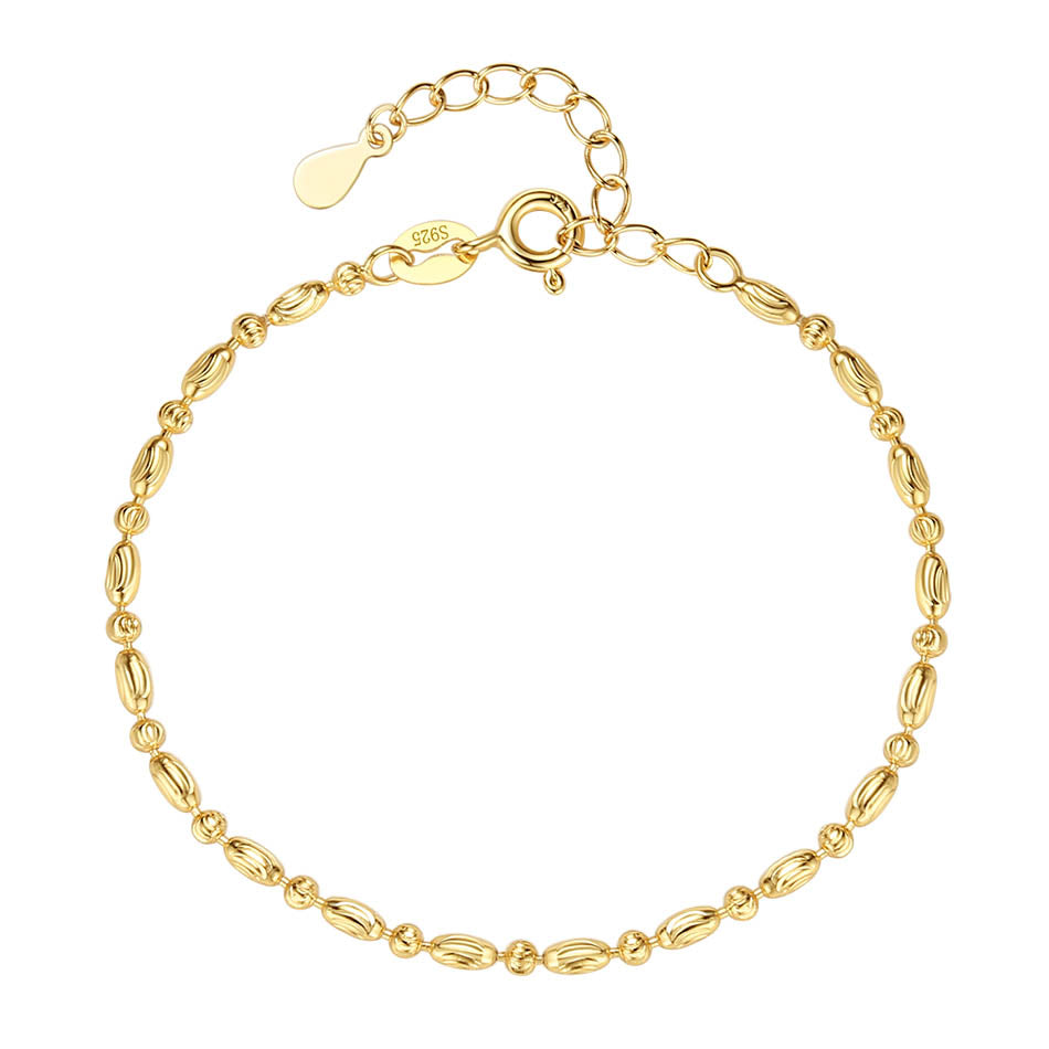 FS0274 925 Sterling Silver Bead Bar Chain Bracelet