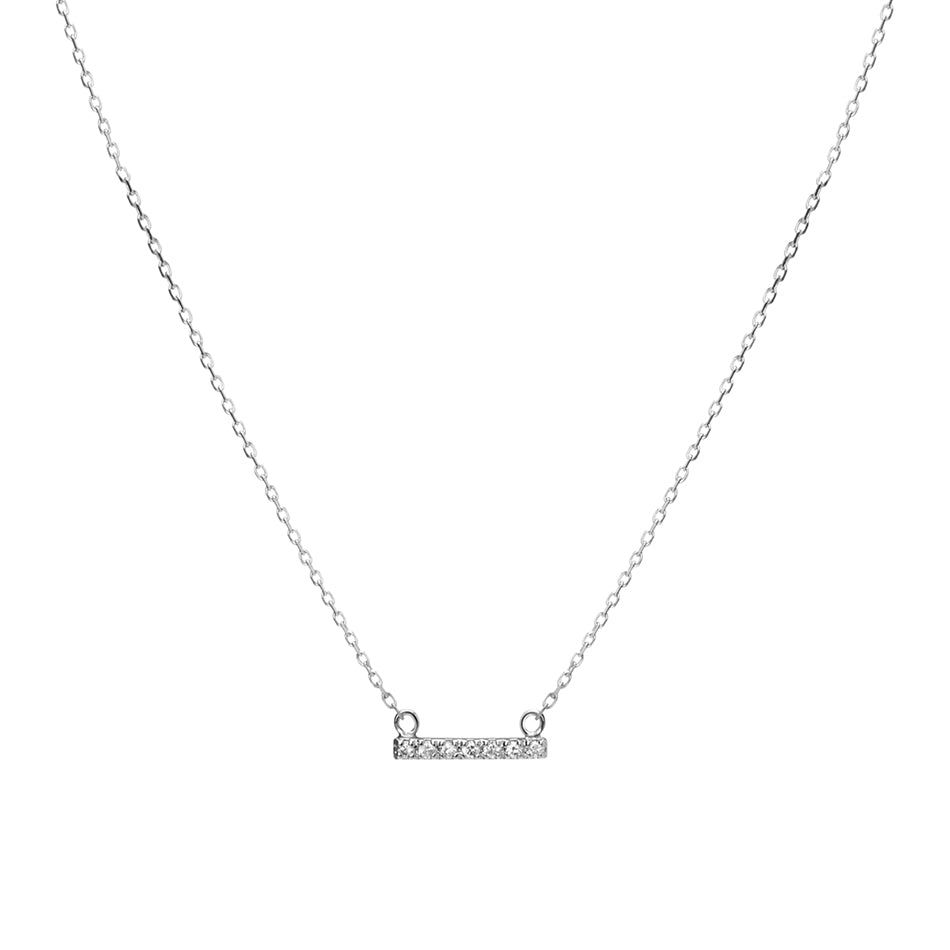 FX0079 925 Sterling Silver Mini Diamond Bar Pendant Necklace