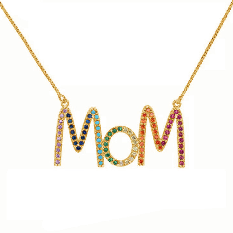 FX0495 925 Sterling Silver Rainbow Zircon Mom Necklace
