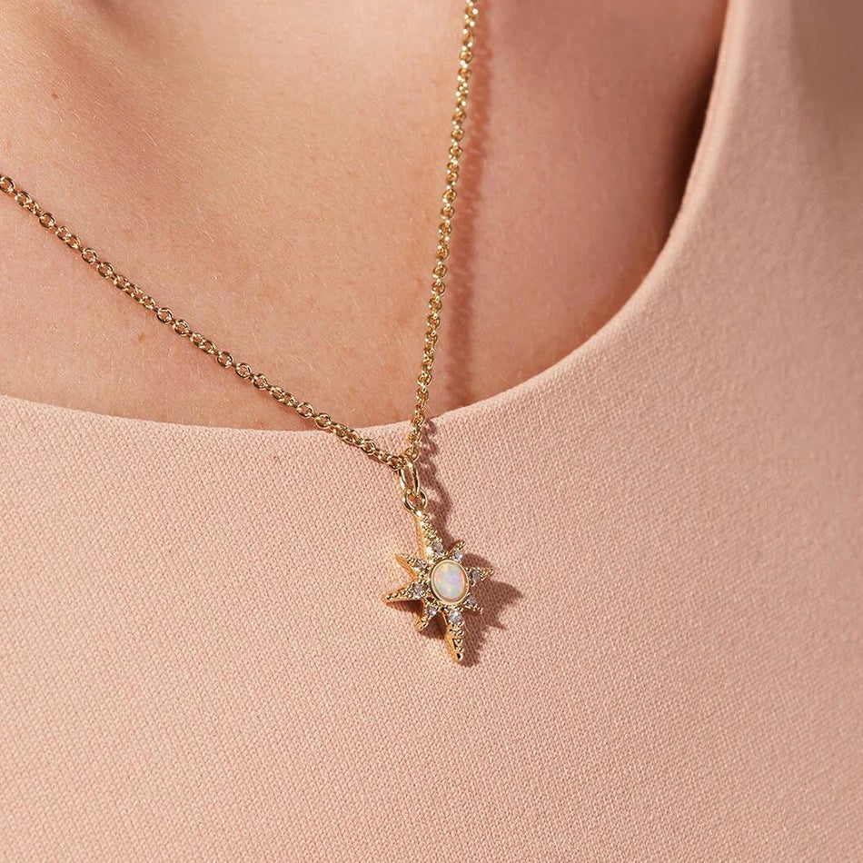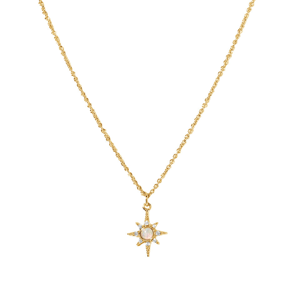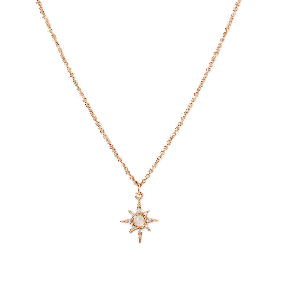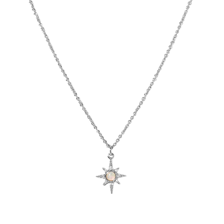 FX0509 925 Sterling Silver Opal Starburst Necklace