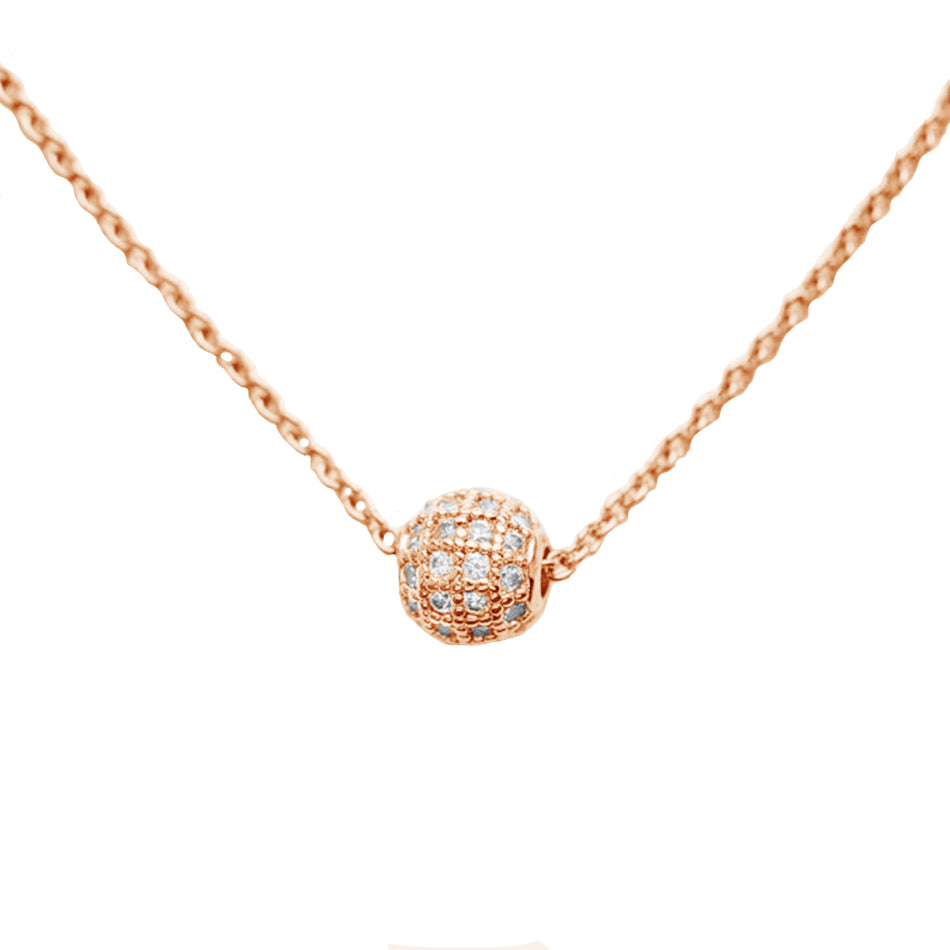 FX0640 925 Sterling Silver Beaded Charm CZ Necklace